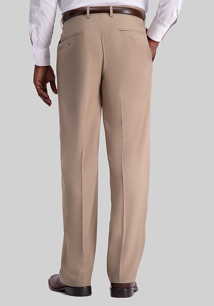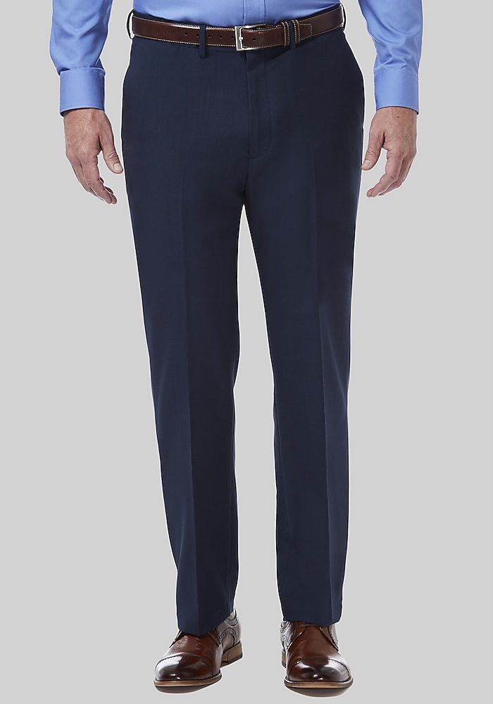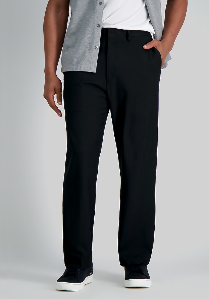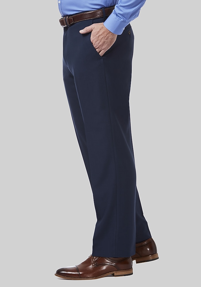 Product description Experience everyday sophistication and ease with the Haggar Premium Comfort Classic Fit Flat Front Dress Pants. Designed for the man who values both a timeless look and superior comfort, these pants feature a Classic Fit that has a relaxed feel through the hip and thigh, ensuring freedom of movement. The flat front provides a modern silhouette, while the innovative hidden expandable waistband subtly adjusts for a perfect fit all day long. Crafted from a 4-way stretch, wrinkle-free fabric, they promise effortless wear and care, making them an indispensable addition to your wardrobe for both business and leisure. Big & Tall Premium Comfort Classic Fit Flat Front Dress Pants are your new go-to for effortless style and all-day comfort. Engineered with a hidden expandable waistband that stretches up to 3 inches and innovative 4-way stretch fabric, these pants move with you, providing unparalleled flexibility from morning meetings to evening events. The Classic Fit offers a polished, timeless silhouette with a flat front for a clean look, while the wrinkle-free, no-iron design ensures you always look sharp without the extra effort. Crafted with Repreve recycled fibers, these machine-washable pants not only offer superior comfort and convenience but also reflect a commitment to sustainability, making them a smart and stylish choice for any wardrobe. Traditional Fit Flat Front Hidden comfort waistband expands up to 3 inches 4-way stretch fabric 78% Polyester, 22% Recycled Polyester Machine washable Imported