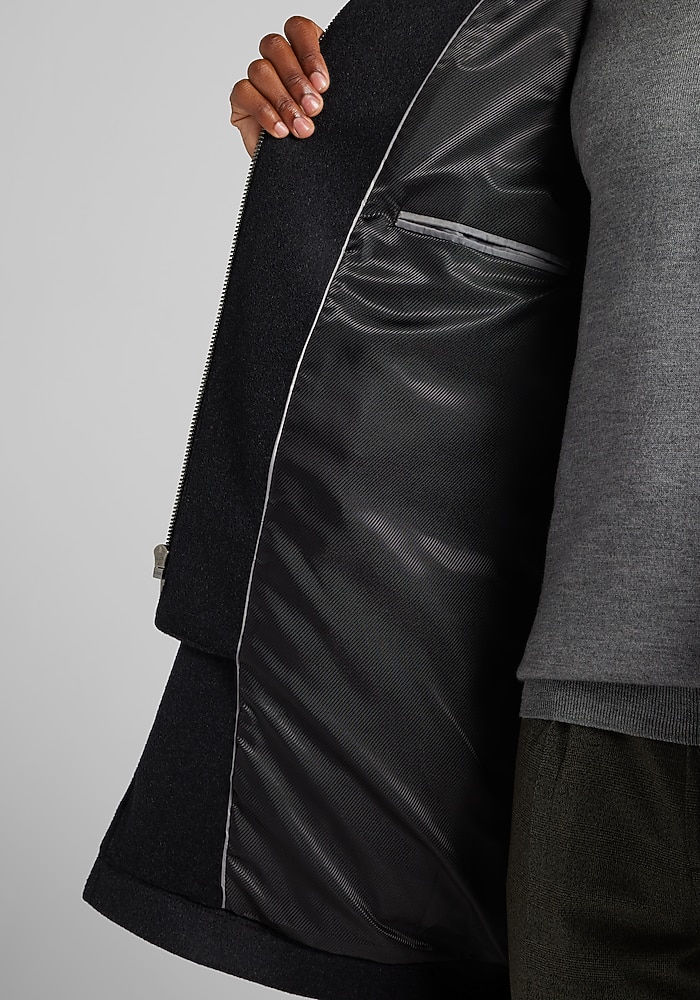 Product description This wool-blend carcoat features a Tailored Fit that creates a modern, streamlined silhouette. Crafted from dense Melton fabric, the result is a thick, wind-resistant, and warm material that still feels soft to the touch. It’s a smart layer for colder weather, it provides reliable warmth and structure. With clean lines and a refined design, this coat transitions effortlessly from workdays to weekends. This wool-blend carcoat features a Tailored Fit that creates a modern, streamlined silhouette. Crafted from dense Melton fabric, the result is a thick, wind-resistant, and warm material that still feels soft to the touch. It’s a smart layer for colder weather, it provides reliable warmth and structure. With clean lines and a refined design, this coat transitions effortlessly from workdays to weekends. Tailored Fit 55% wool, 40% polyester, 5% other fibers Dry clean only Imported