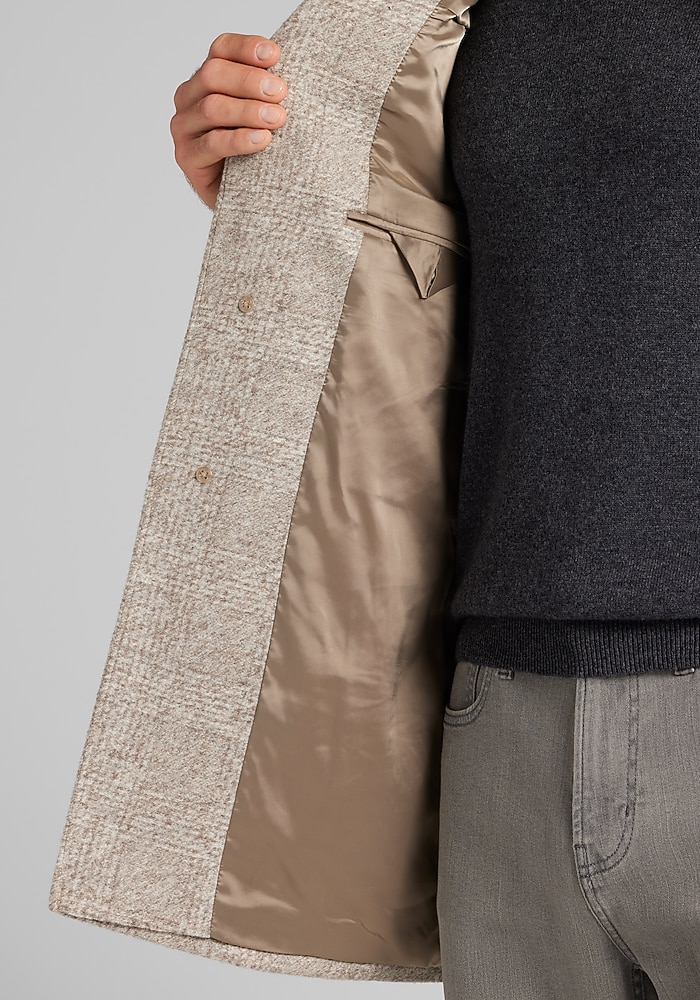 Product description Classic pattern meets contemporary comfort in this Jos. A. Bank overcoat. Designed in a Tailored Fit, it offers a sharp silhouette while the knit construction provides added flexibility and ease. The plaid pattern lends timeless appeal, making it a polished layer for both weekday commutes and weekend outings. Classic pattern meets contemporary comfort in this Jos. A. Bank overcoat. Designed in a Tailored Fit, it offers a sharp silhouette while the knit construction provides added flexibility and ease. The plaid pattern lends timeless appeal, making it a polished layer for both weekday commutes and weekend outings. Tailored Fit 54% polyester, 23% wool, 23% viscose Machine washable Imported