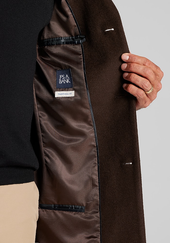 Product description Timeless and tailored, this topcoat is crafted from a refined wool blend that offers warmth without bulk. Designed to layer comfortably over suits or casual looks, it features clean lines and a versatile length. A smart cold-weather essential that combines function and polish. Timeless and tailored, this topcoat is crafted from a refined wool blend that offers warmth without bulk. Designed to layer comfortably over suits or casual looks, it features clean lines and a versatile length. A smart cold-weather essential that combines function and polish. Traditional Fit 60% Wool, 35% Polyester, 5% Other Fibers Dry clean only Imported
