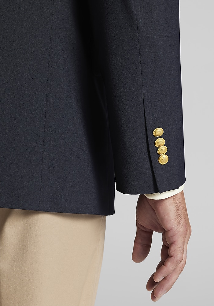 Product description Two decorative, gold buttons embellish this topnotch blazer. From Jos. A. Bank, it’s woven from premium wool, and fashioned with a Traditional Fit. Be it an interview, a power lunch, a cocktail party, a dinner date, or a business trip, this timeless, essential sport coat has got you covered. Two decorative, gold buttons embellish this topnotch blazer. From Jos. A. Bank, it’s woven from premium wool, and fashioned with a Traditional Fit. Be it an interview, a power lunch, a cocktail party, a dinner date, or a business trip, this timeless, essential sport coat has got you covered. Traditional Fit Two gold buttons, center vent, notch lapel, fully lined 60% WOOL 38% POLYESTER 2% SPANDEX Dry clean only Imported