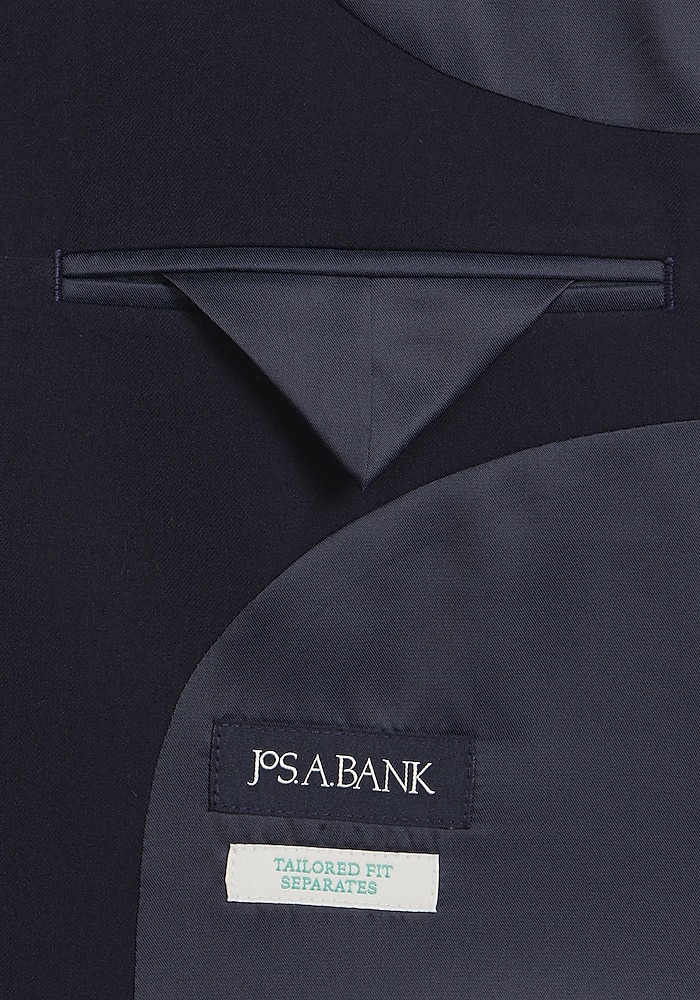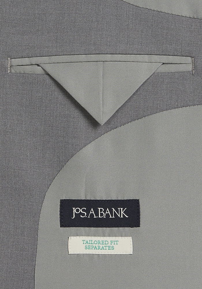 Product description Suit separates, such as this handsome Tailored Fit jacket from Jos. A. Bank, allow you to achieve a personalized look and custom fit by selecting pant, vest, and jacket sizes independently. Pairing a notch lapel with a two-button closure, it will complete your dress-wear ensemble. Matching Pants: #3YCF Matching Vest: #3XR4 Suit separates, such as this handsome Tailored Fit jacket from Jos. A. Bank, allow you to achieve a personalized look and custom fit by selecting pant, vest, and jacket sizes independently. Pairing a notch lapel with a two-button closure, it will complete your dress-wear ensemble. Matching Pants: #3YCH Tailored Fit Two button, side vents, notch lapel 68% polyester, 30% viscose, 2% spandex Dry clean only Imported