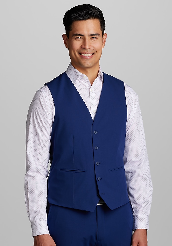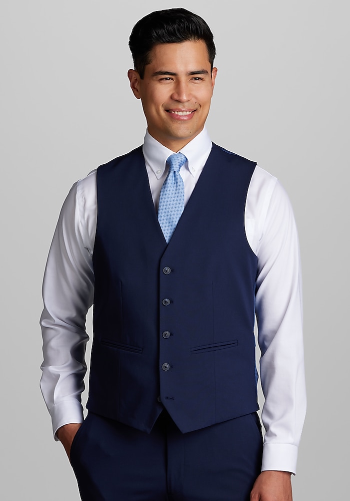 Product description Customize your look with this suit separates vest from Jos. A. Bank. Suit separates allow you to choose coat, pants, and vest sizes separately for the perfect fit. Matching Jacket: #3XRR Matching Pants: #3XRU Slim fit Five button 65% polyester, 28% viscose, 7% spandex Dry clean only Imported