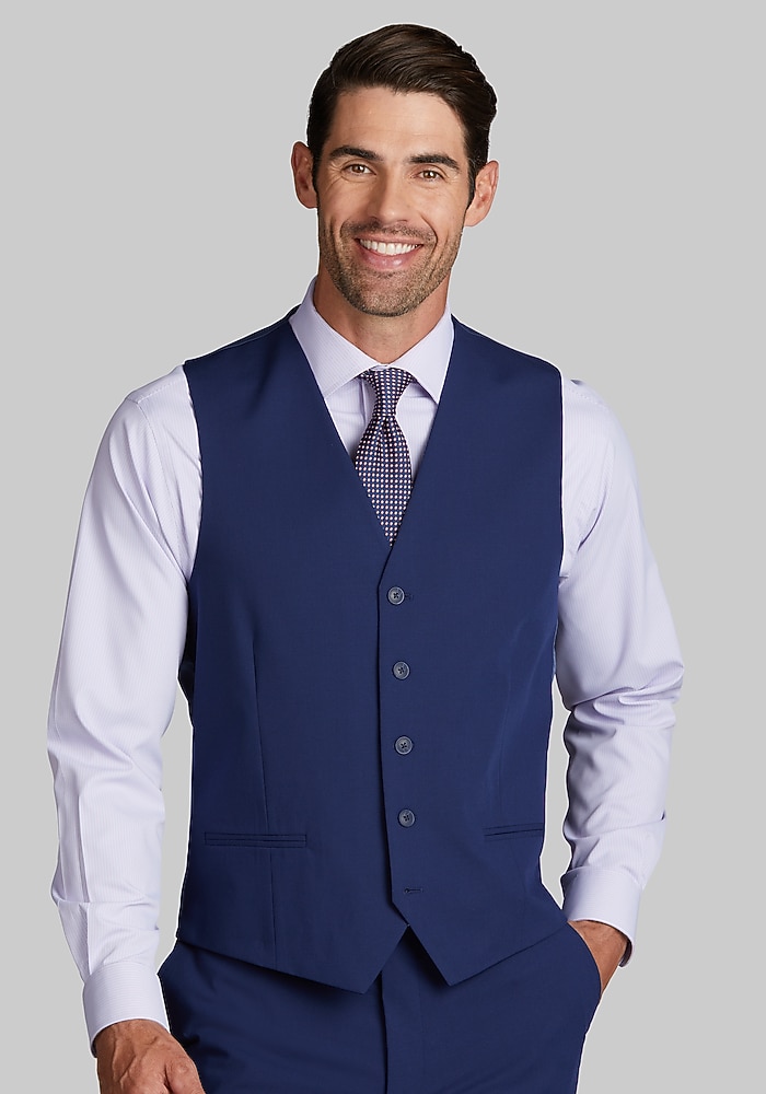 Product description Suit separates, like this vest from Jos. A. Bank, make it easy to find your perfect fit. Choose coat, pant and vest sizes separately and say goodbye to alterations. Matching Jacket: #3XR6 Matching Pants: #3XR8 Suit separates, like this vest from Jos. A. Bank, make it easy to find your perfect fit. Choose coat, pant and vest sizes separately and say goodbye to alterations. Tailored Fit. Five button. 65% polyester, 28% viscose, 7% spandex. Dry clean only. Imported. Tailored fit 5 button 65% polyester, 28% viscose, 7% spandex Dry clean only Imported