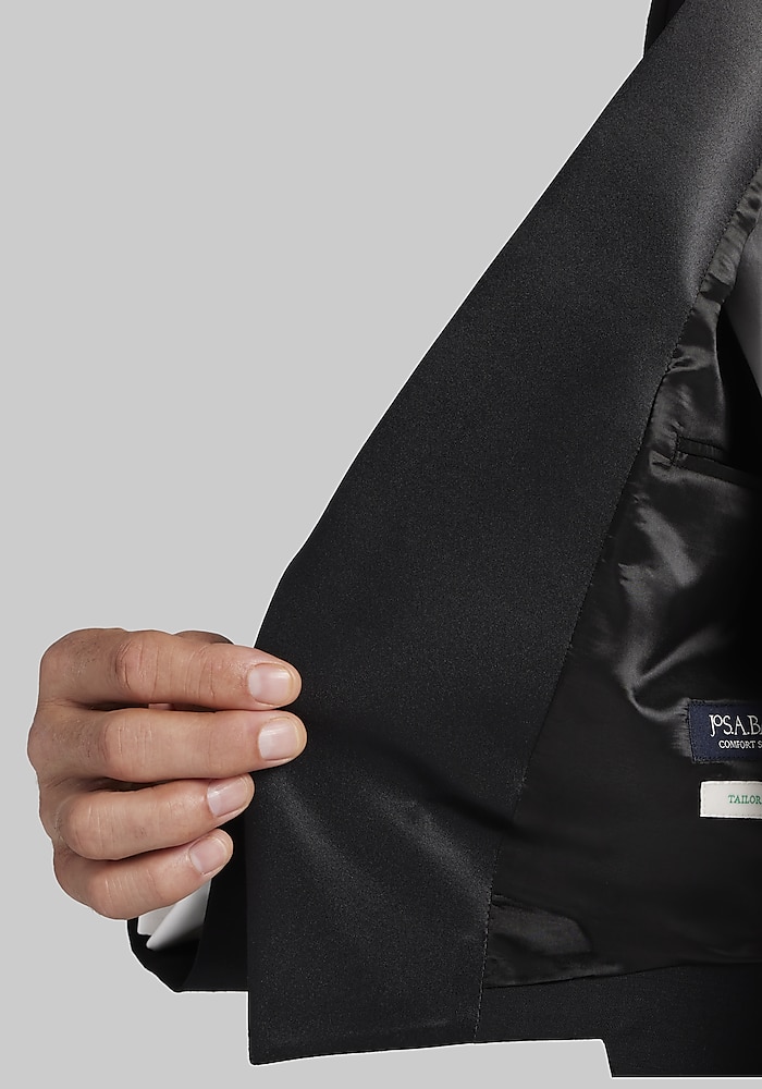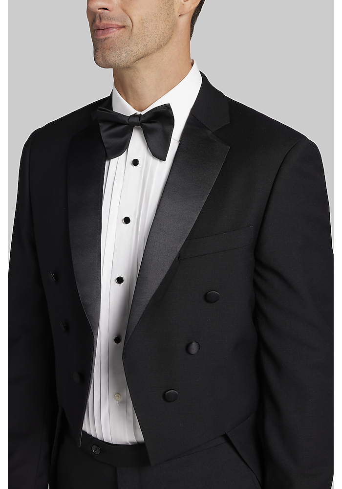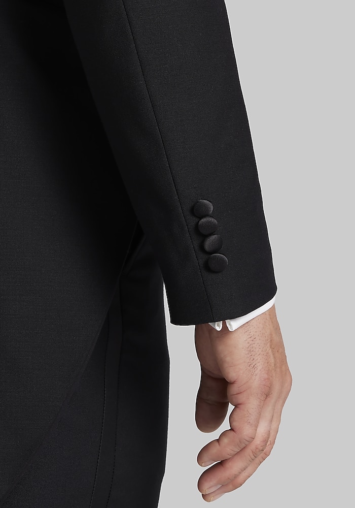 Product description When the occasion calls for formal attire, yet customized style is what you desire, look no further than this tuxedo Dinner Jacket. This Jos. A. Bank wool-blend, six-button evening tail dinner jacket allows you to select your jacket, pant, and vest sizes independently to create an ensemble for an event to remember. BT JAB TF 6BTN BLACK EVENING TAIL DINNER JACKET Tailored Fit Six button, side vents, notch lapel 85% wool, 13% polyester, 2% spandex Dry clean only Imported