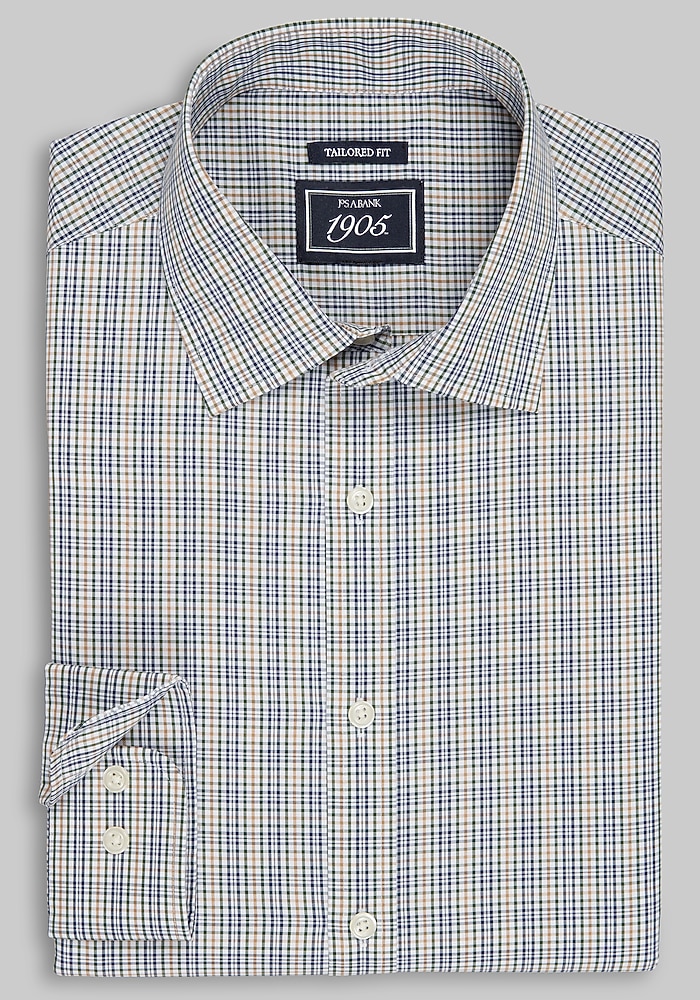 1905 Collection Tailored Fit Small Railroad Check Comfort Stretch Sportshirt#6RYG
