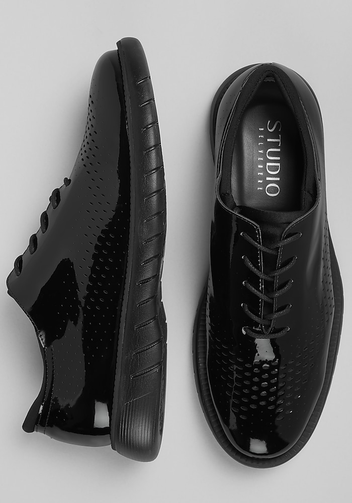 Product description This polished formal sneaker seamlessly blends timeless sophistication with modern comfort. Crafted from rich patent leather, it features elegant laser-cut wingtip designs that add a touch of classic refinement. The luxe neoprene lining and foam-cushioned insole ensure all-day comfort, while the Extralight sole provides durability without added weight. This shoe is perfect for those seeking a stylish yet comfortable option for formal occasions. Laser-cut wingtip Luxe neoprene lining Polished patent leather Imported Formal sneakers