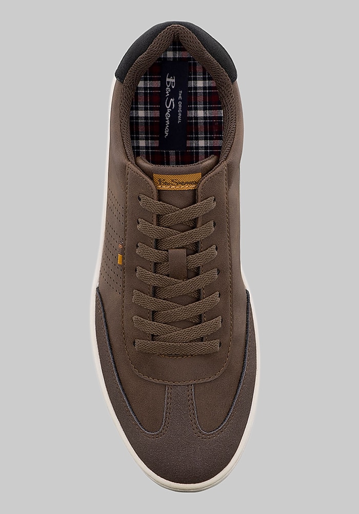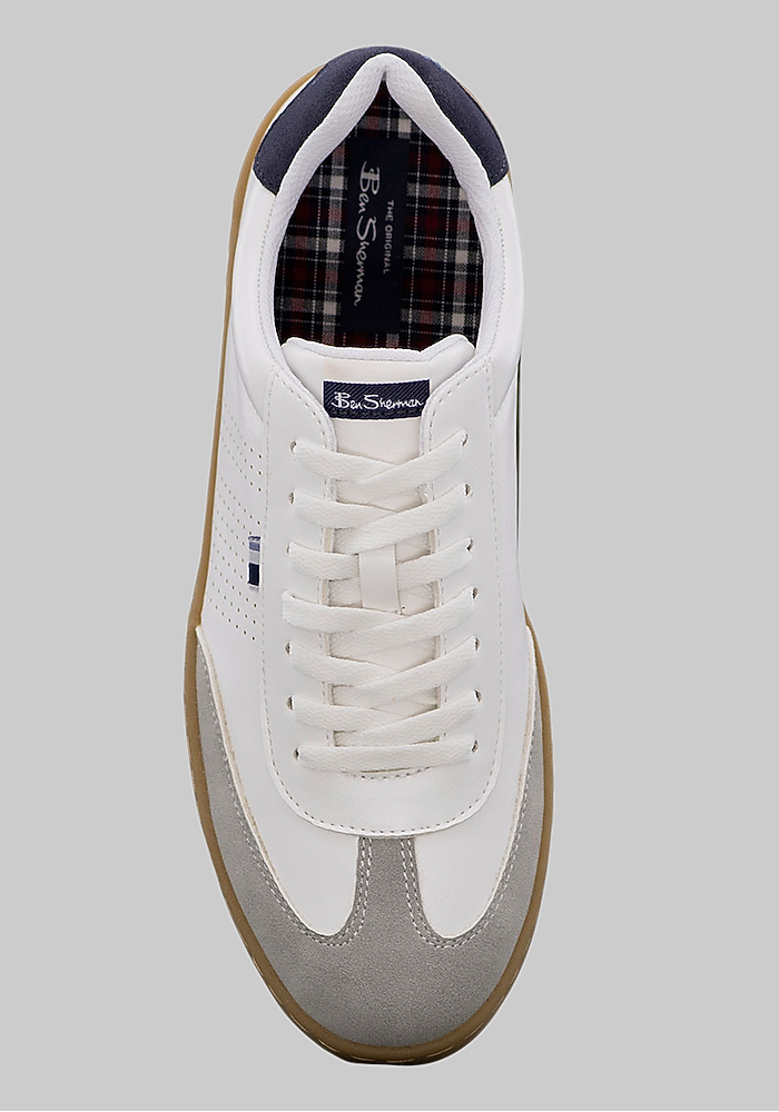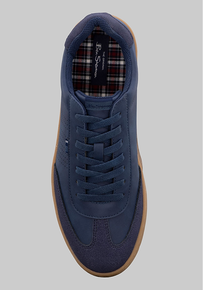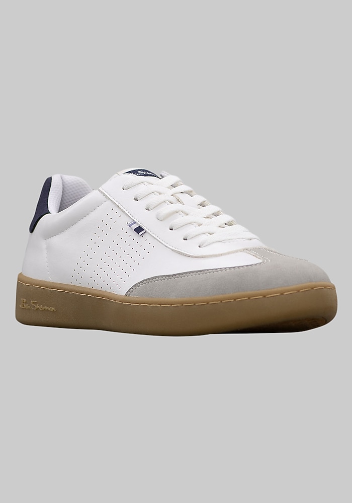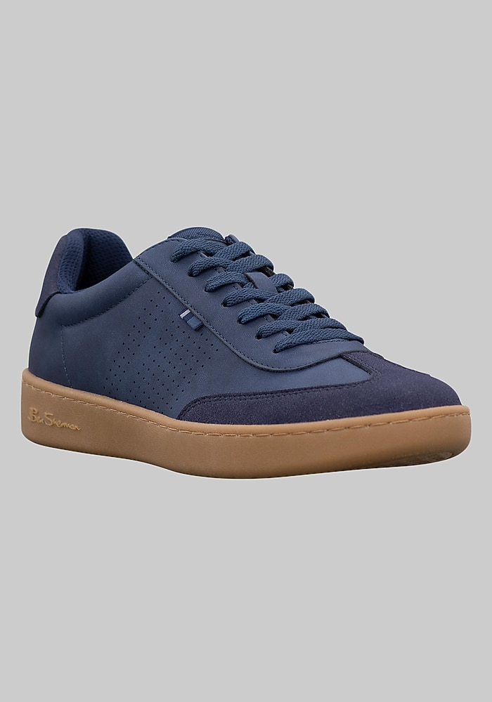 Product description These street-ready sneakers from Ben Sherman bring a modern edge to a classic silhouette. With a faux suede finish and perforated side panels, they have a minimalist look that’s easy to dress up or down. The bike toe design adds structure, while soft fabric linings and a cushioned footbed keep things comfortable from morning to night. Finished with a durable TPR outsole, they’re a go-to for everyday style. Adjustable lace-up closure Added padding on tongue and collar Faux suede Imported Sneakers