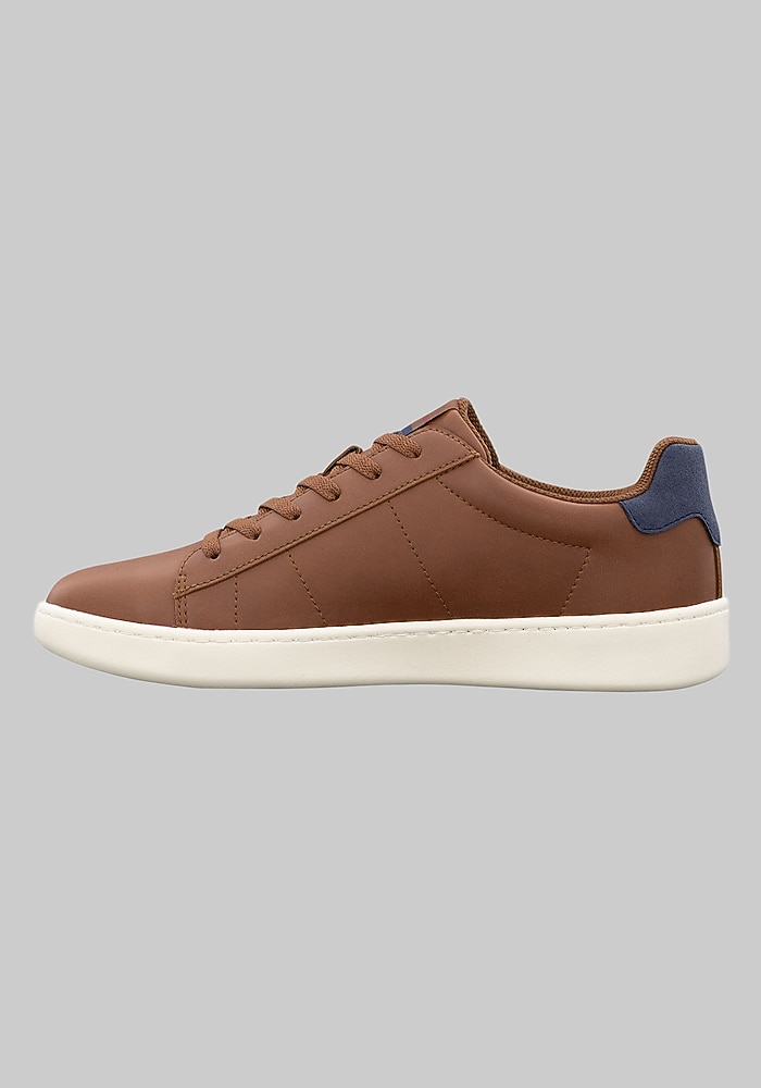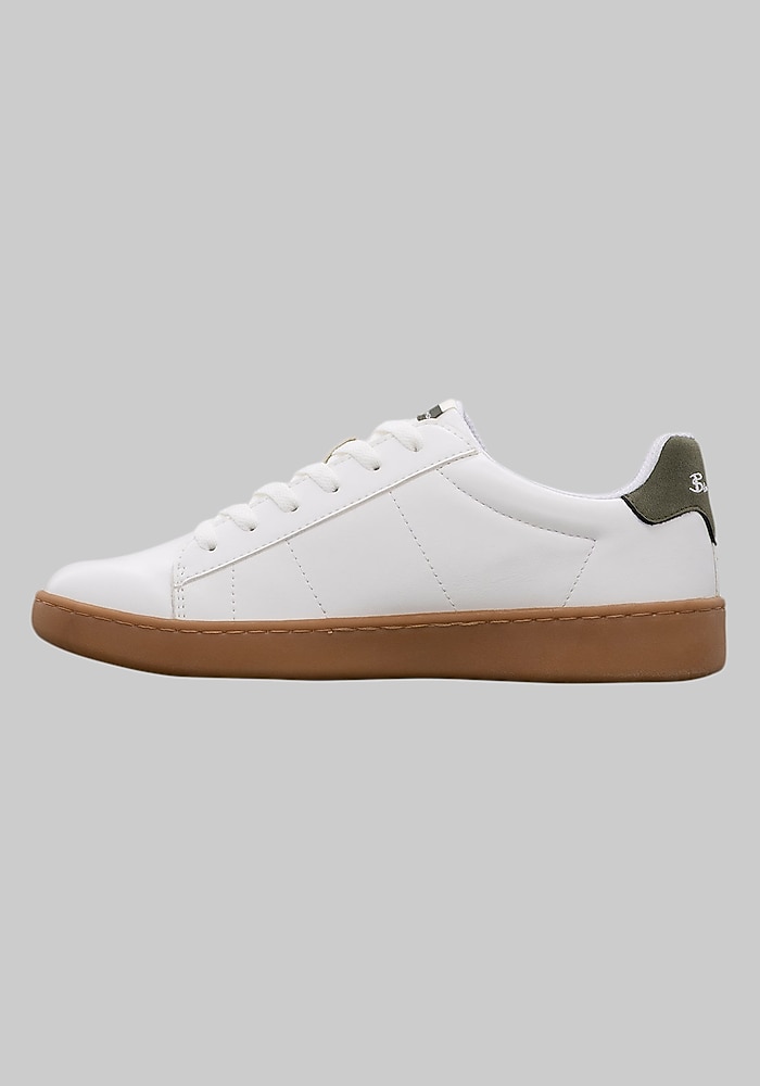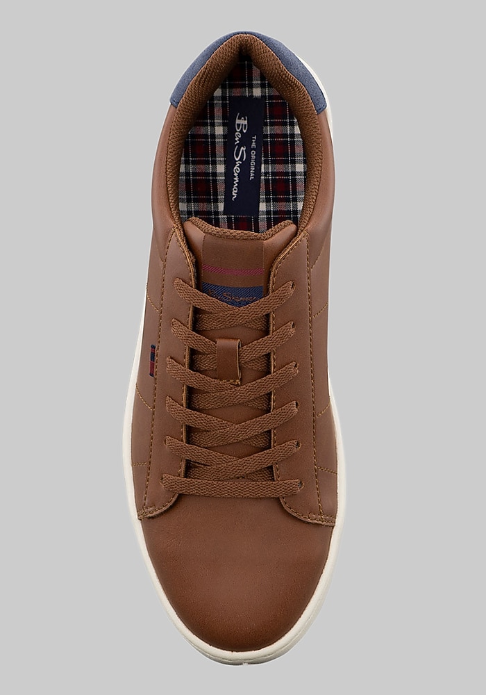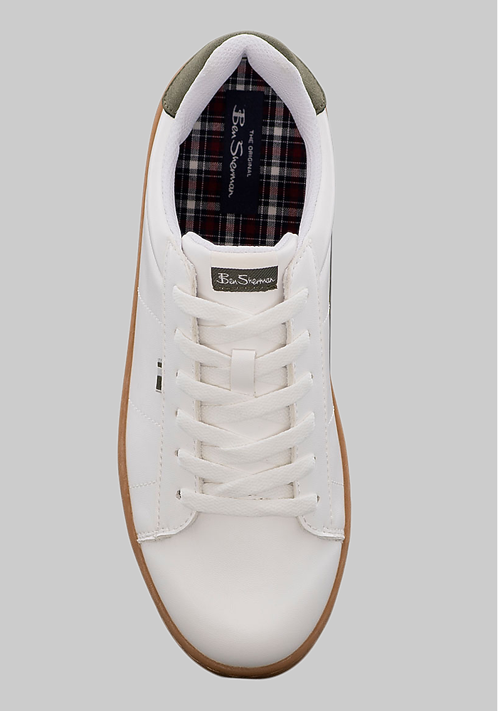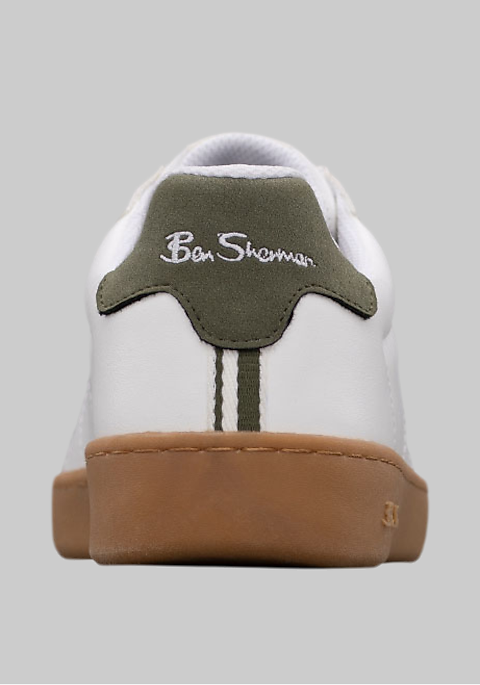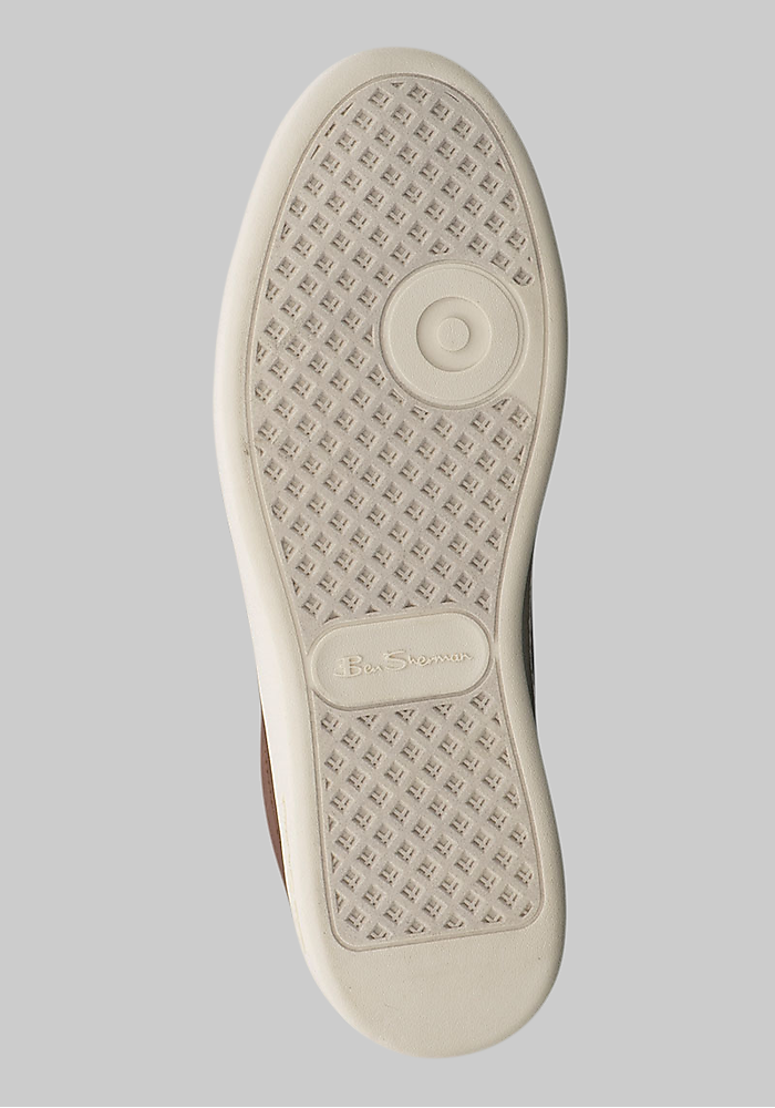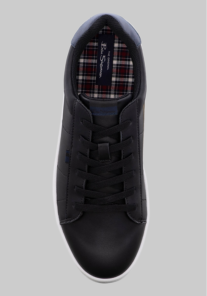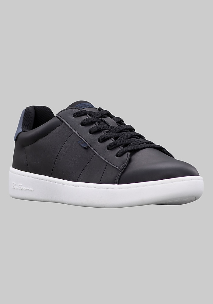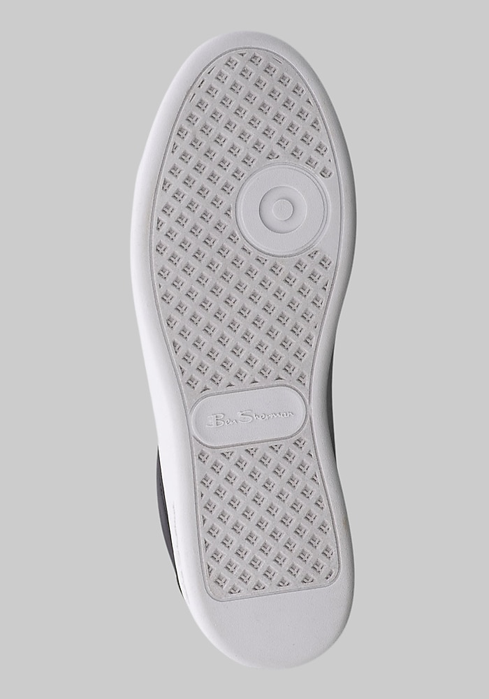 Product description With a crisp silhouette and retro-inspired design, these low-top sneakers bring a modern edge to classic court style. The synthetic leather upper is accented by Ben Sherman’s signature mod stripe, while added padding on the tongue and collar enhances comfort. A cushioned insole and breathable lining make them ideal for all-day wear, and the rubber outsole ensures durability with every step. Adjustable lace-up closure Added padding on tongue and collar Faux leather Imported Sneakers
