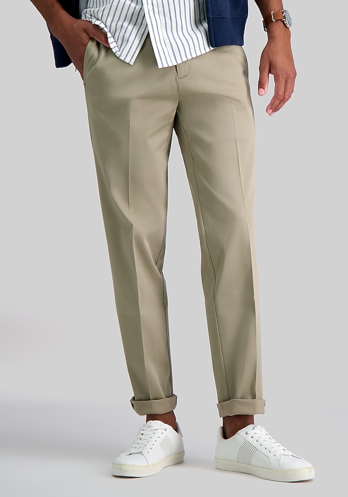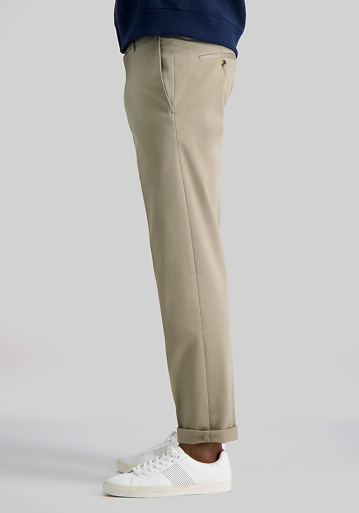 Product description These wrinkle-free pants are made for the busy man on the go. Featuring non-iron, comfort stretch fabric, these pants are ready to wear straight from the dryer. A convenient shirt gripper is an added feature to ensure you never look “undone”. Straight Fit Flat front Wrinkle free 61% cotton, 37% polyester, 2% elastane Machine washable Imported