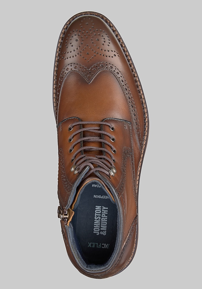 Product description This updated classic from Johnston & Murphy has a sleek yet relaxed appeal. An EVA insole with cushioned XC Flex construction and a removable EVA memory-foam footbed provide support and comfort. Wingtip Xc flex construction Antimicrobial lining Eva insole Inside zip for easy ons and offs Hand-finished full-grain leather upper Rubber lug sole Wingtip boots