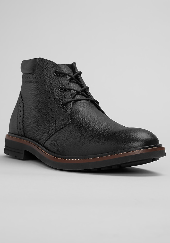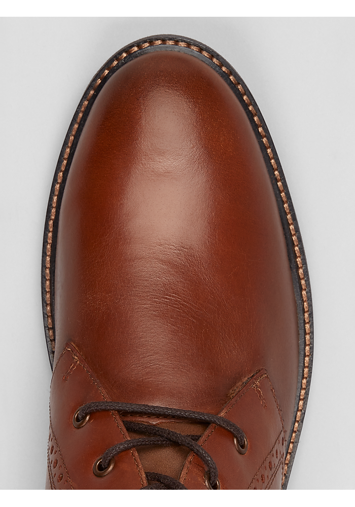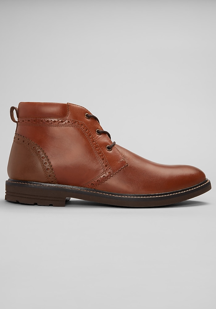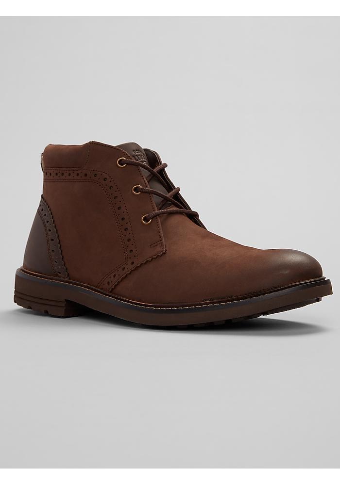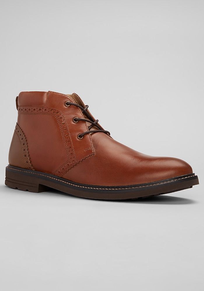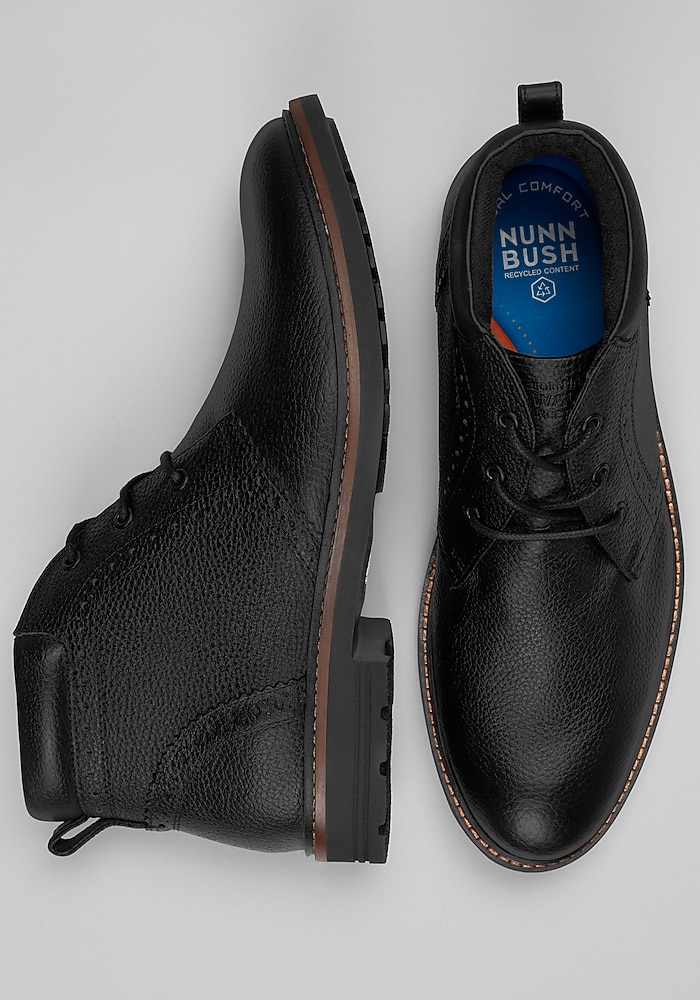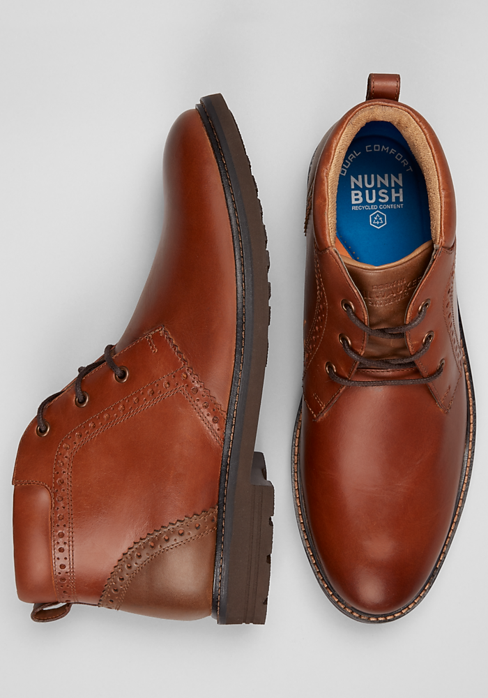 Product description Rich leather, subtle perfing, and a stacked-look sole give these Nunn Bush chukkas a refined yet relaxed feel that transitions effortlessly from office hours to after hours. Crafted from genuine crazy horse or tumbled leather with soft Suedetec linings, they deliver a smooth, comfortable fit. Underfoot, the molded Dual Comfort footbed made with recycled content blends cushioning and arch support for all-day ease. Finished with a lightweight EVA and durable rubber sole, these chukkas are built for style, comfort, and everyday wearability. Lace up, plain toe Genuine crazy horse or tumbled leather Lightweight EVA rubber sole Imported Chukka boots