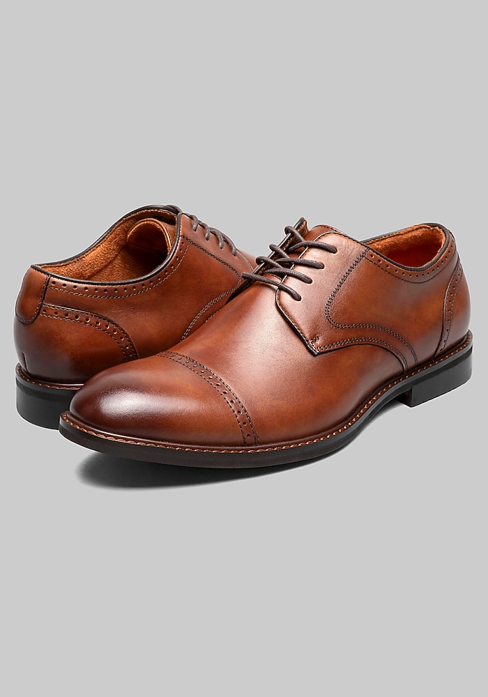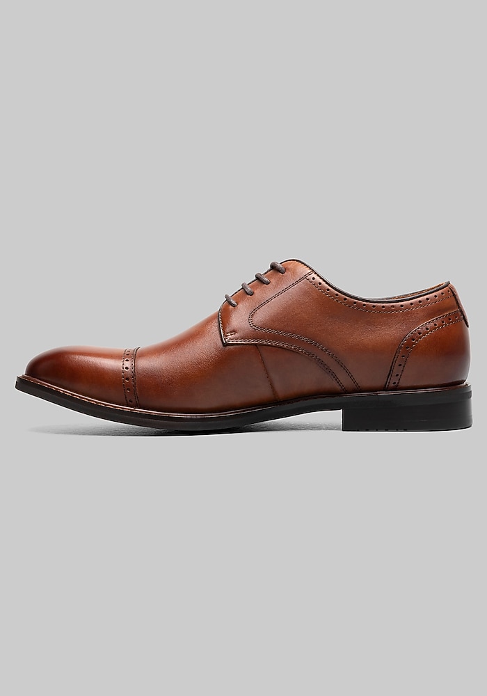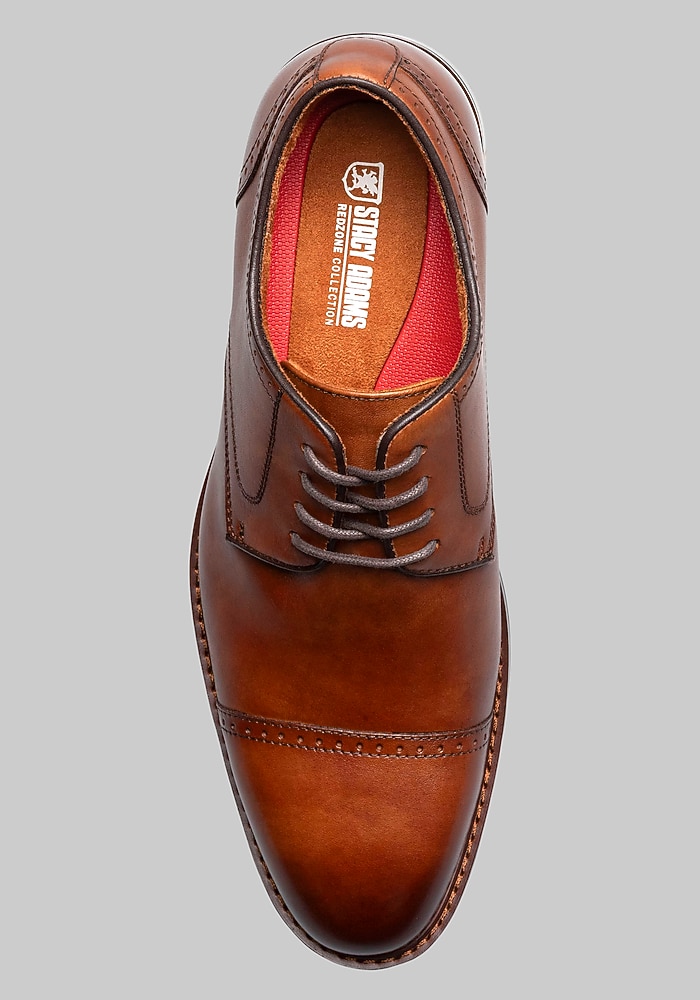 Product description This Stacy Adams Oxford is crafted from rich leather and finished with subtle perfing along the toe for added detail. Its trim lines and stacked sole make it a versatile choice for everything from office wear to dressier occasions. Inside, the RedZone removable footbed features a molded heel cup and anatomical arch support, delivering comfort with every step. Whether paired with a suit or dressed down with chinos, this Oxford offers classic style and all-day wearability. Cap toe Microfiber lining RedZone removable footbed Smooth leather upper Oxfords Imported