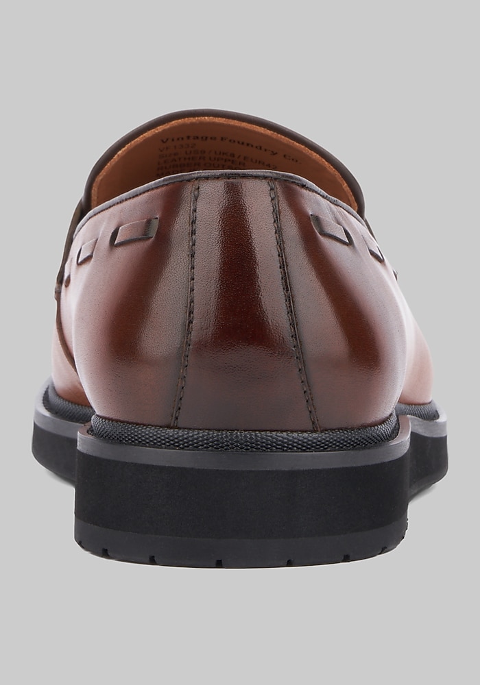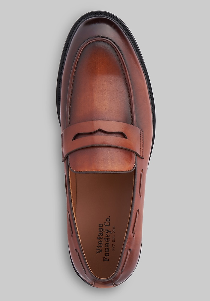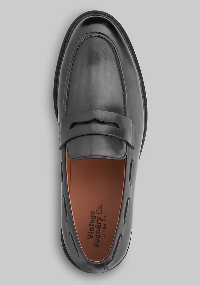 Product description Refined and timeless, these penny loafers from Vintage Foundry are a nod to classic sophistication. Crafted from smooth leather with a signature penny keeper strap, it’s the kind of shoe that transitions seamlessly from boardroom to dinner out. Cushioned for comfort and built to last, these shoes are a smart staple for your footwear collection. Slip on Penny keeper strap Leather Rubber sole Imported Penny loafers