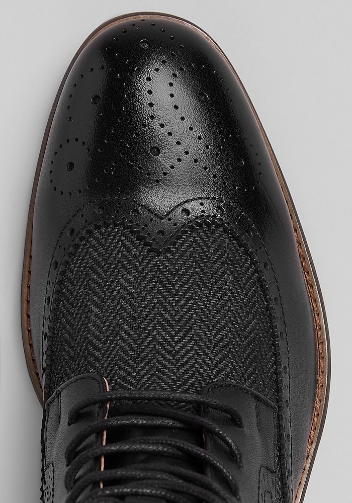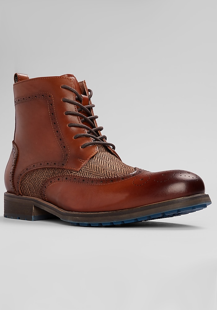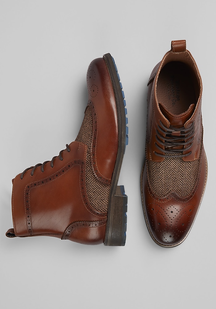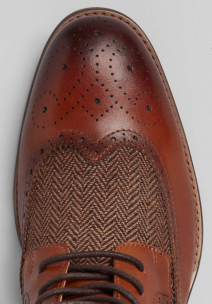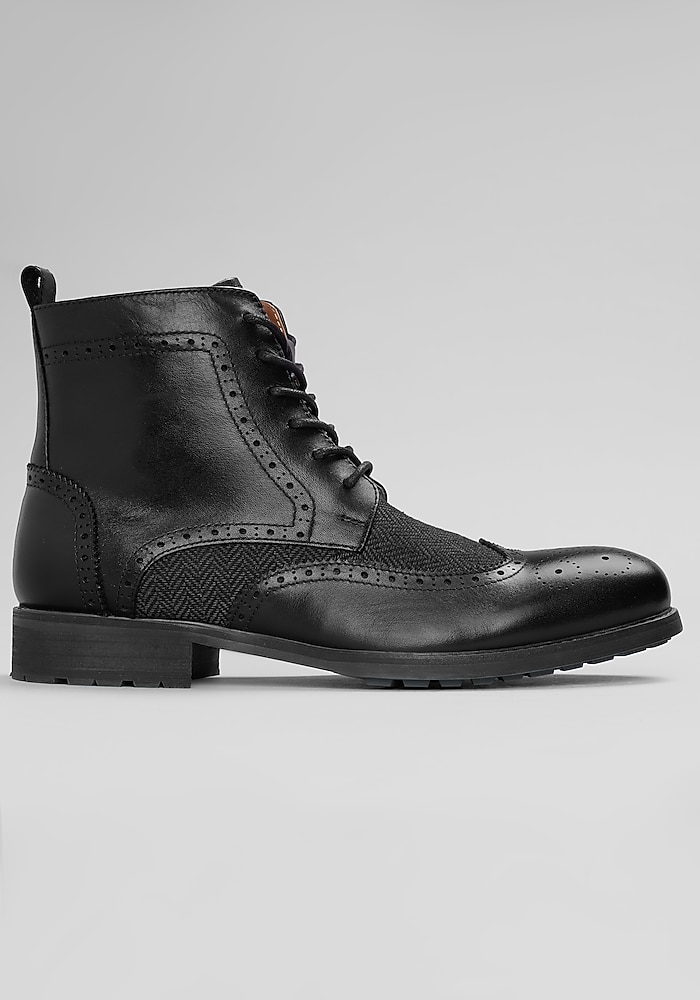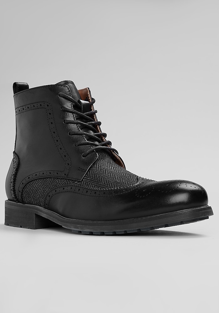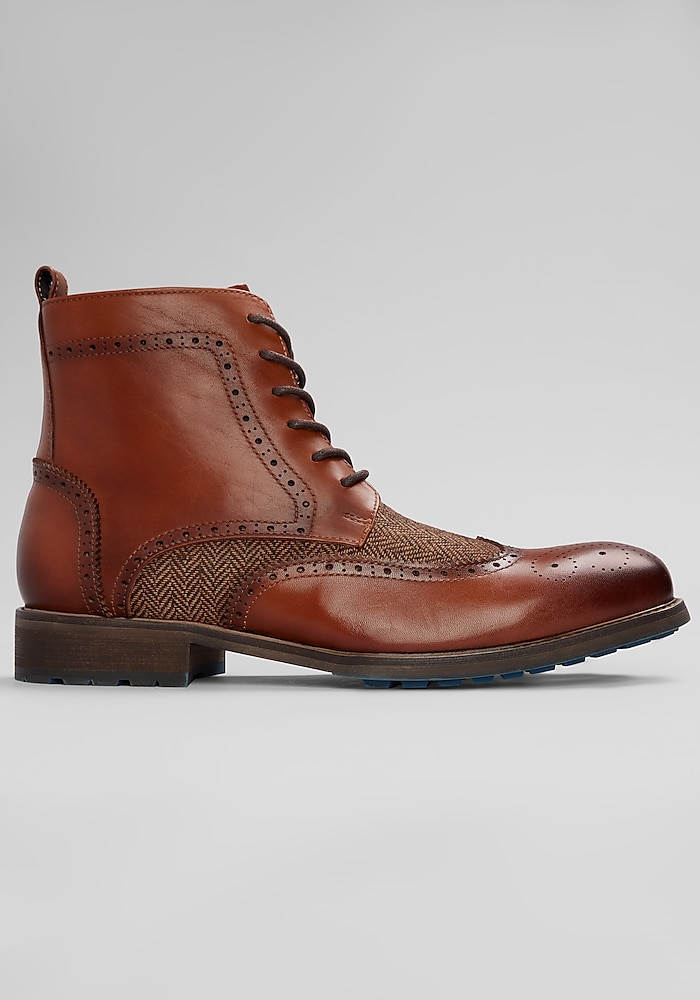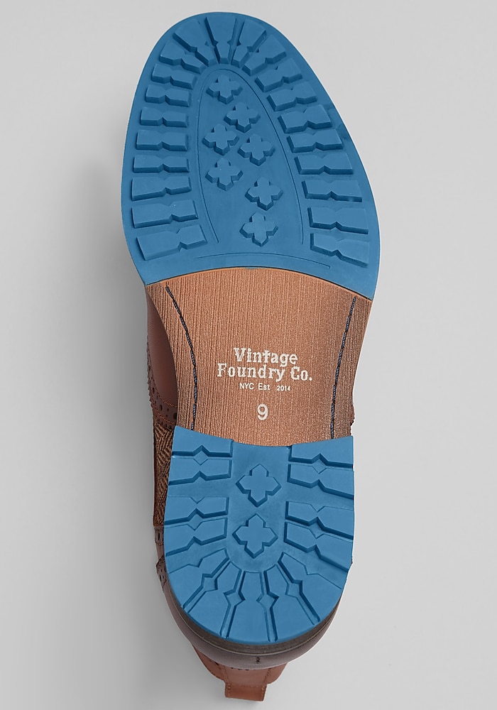Product description Known for vintage-inspired craftsmanship, Vintage Foundry Co. designs balance timeless detail with modern wearability. The Flint pairs classic style with standout texture. Made from a combination of leather and cotton, it features a two-tone herringbone pattern with a wool-like finish for a refined yet distinctive look. A pull tab and rubber outsole add function. Lace up Leather-cotton lining and upper Rubber outsole Imported Dress boots