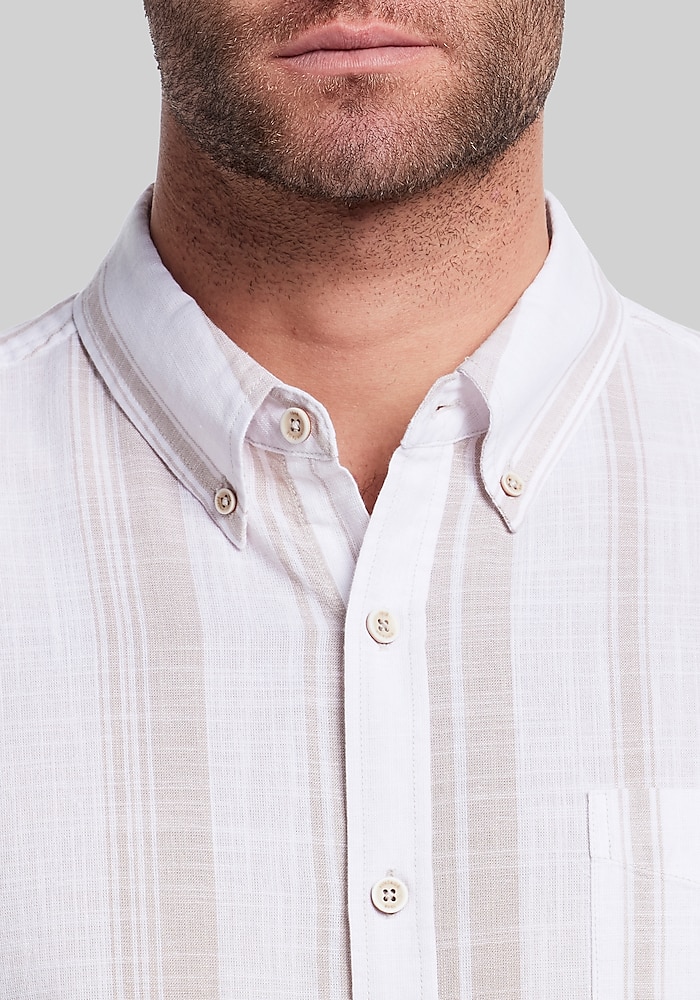 Product description Wake up your wardrobe with this shirt from Weatherproof Vintage. Woven in a sturdy yet soft cotton twill, its timeless stripe pattern brings effortless character to your outfit whether layered under a sweater or worn solo. The Classic Fit offers room to move without excess bulk, and thoughtful details like a button down collar, full length placket, and chest pocket blend function with heritage style. Traditional Fit Button front Soft touch fabric with stretch 100% cotton Machine washable Imported