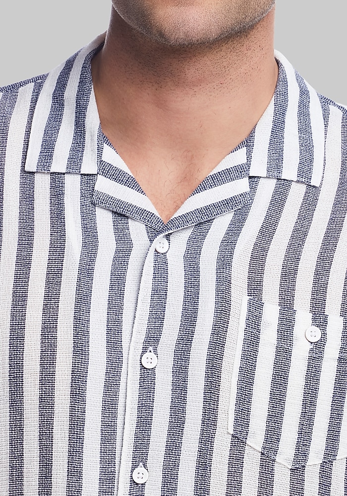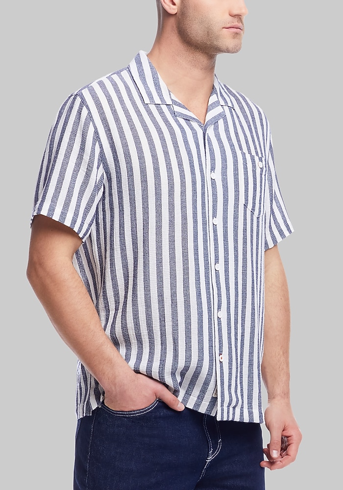 Product description This short sleeve Airtex shirt brings effortless, breathable style to your warm weather wardrobe. Crafted in our signature open weave Airtex fabric, a lightweight blend of cotton and linen, it features subtle stripes that add visual interest. The classic camp collar, button front closure, and chest pocket give it timeless appeal, while the straight hem with side vents ensures a relaxed, comfortable fit. Roomy but never boxy, it’s the ideal go to for everything from weekend getaways to laid back afternoons. Traditional Fit Button front, chest pocket Breathable fabric 92% cotton, 8% linen Machine washable Imported