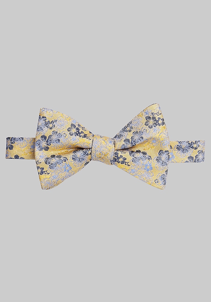 Product description Whether you want to elevate your smart-casual look or add pizzazz to your professional or dress wear, this pre-tied bow tie will do the trick. Woven from luxurious silk and patterned with a floral flourish, it is fully adjustable to allow for effortless styling. Pre-tied Fully adjustable 100% silk Dry clean only Imported