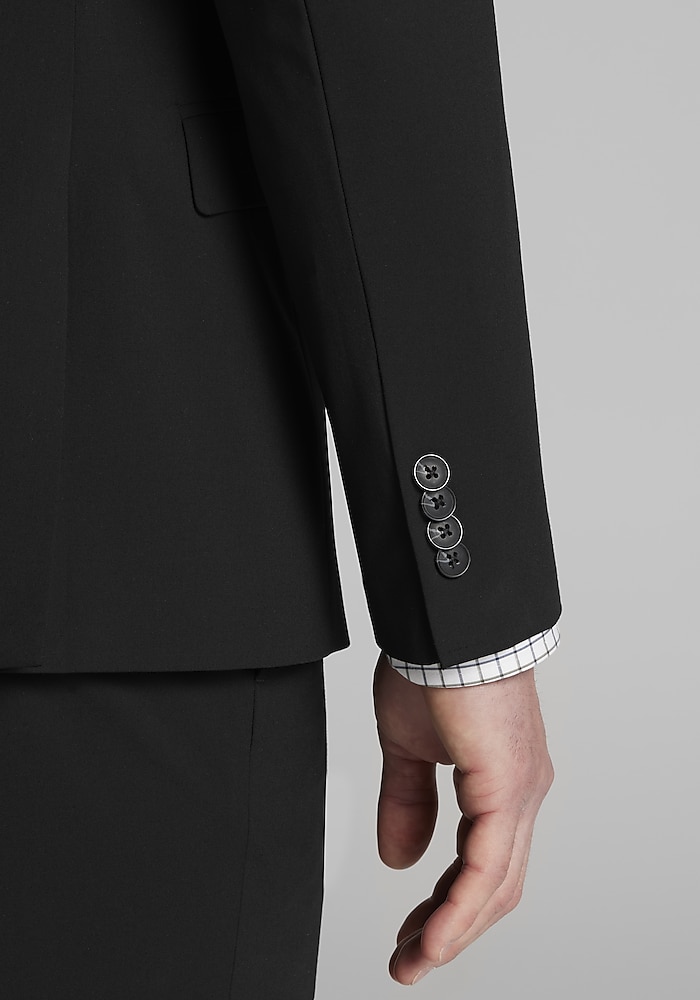 Product description This suit separates jacket features a Skinny Fit for a sharp, streamlined silhouette. Crafted for versatility, suit separates allow you to mix and match your jacket, vest, and pants sizes independently, ensuring a custom fit tailored to your body type. Ideal for those who prefer a fashion-forward style without sacrificing comfort, this jacket pairs effortlessly with the rest of your ensemble, giving you the freedom to create the perfect look. Matching Pants: #33VF Skinny Fit Two button, side vents, notch lapel. Flap pockets 65% polyester, 28% viscose, 7% spandex Dry clean only Imported