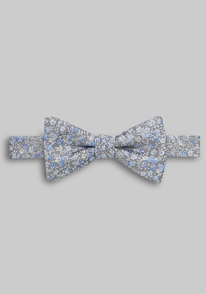 Product description Both practical and stylish, this pre-tied bow tie with a small floral pattern is a charming addition to your look. The delicate floral design brings a subtle pop of personality, perfect for those looking to infuse a bit of flair into their ensemble. Whether you’re dressing up for a formal occasion or aiming to add a refined touch to a more casual outfit, this bow tie is the perfect accessory. The pre-tied construction ensures a flawless knot every time, while the adjustable strap provides a customized fit for comfort and ease. Pre-tied, fully adjustable 50% silk, 50% polyester blend Dry clean only Imported
