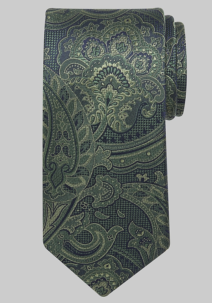 Product description This luxurious tie features a captivating paisley motif reimagined for the modern man. The classic teardrop forms are blown up and boldly displayed, creating a dynamic and eye-catching statement. While the design offers a fresh take on a timeless pattern, the rich color palette ensures a sophisticated look. It’s the perfect choice for the man who isn’t afraid to push boundaries while still appreciating a touch of heritage. Pair it with a sharp suit for a touch of unexpected panache or dress it down with a blazer and dark wash jeans for a more fashion-forward vibe. 3 1/8 inch width 100% silk Dry clean only Imported