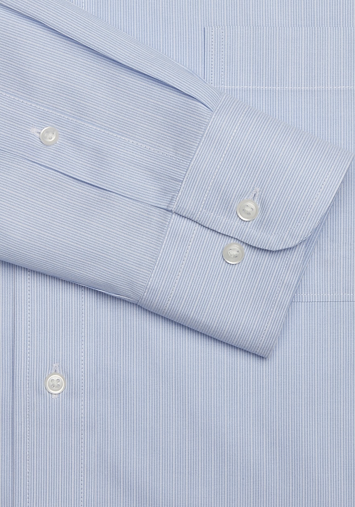 Product description Fine stripes and a spread collar define this handsome dress shirt. From the Traveler® Collection, it’s cut from pure cotton with natural stretch into a flattering, Tailored Fit. Its non-iron treatment and break-resistant buttons allow for effortless wear and care. Cufflinks not included. TRAVELER FINE STRIPE TAILORED FIT SPREAD COLLAR BT Tailored Fit Spread collar Barrel cuff Non-iron, break-resistant buttons, natural stretch 100% cotton Machine washable Imported