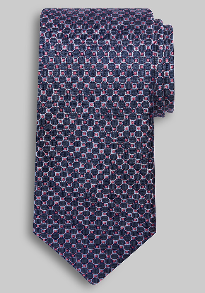 Product description Featuring an intricate geometric squares pattern this silk tie has a luxurious finish, while the understated design enhances both business and dress wear attire with sophistication. Perfect for those who appreciate fine details, this tie brings a modern yet subtle elegance to your ensemble. 3 1/8-inch wide 100% silk Dry clean only Imported