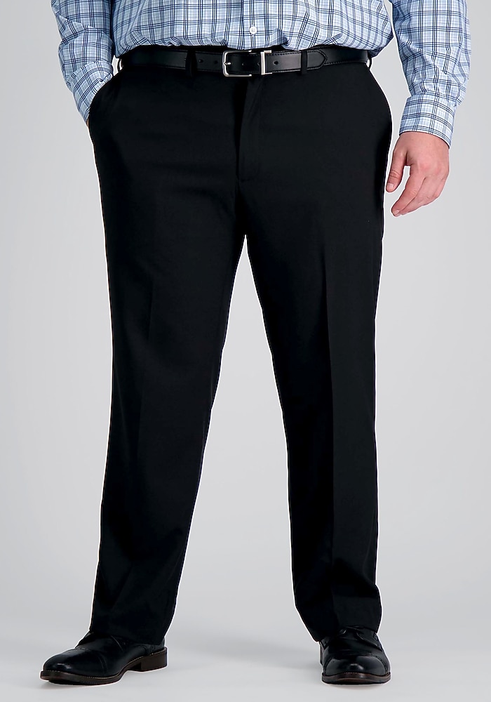 Product description Big & Tall Premium Comfort Tailored Fit Flat Front Dress Pants are your new go-to for effortless style and all-day comfort. Engineered with a hidden expandable waistband that stretches up to 3 inches and innovative 4-way stretch fabric, these pants move with you, providing unparalleled flexibility from morning meetings to evening events. The Tailored Fit offers a polished, timeless silhouette with a flat front for a clean look, while the wrinkle-free, no-iron design ensures you always look sharp without the extra effort. Crafted with Repreve recycled fibers, these machine-washable pants not only offer superior comfort and convenience but also reflect a commitment to sustainability, making them a smart and stylish choice for any wardrobe. Paring polish with performance, these dress pants are styled with a cool, Straight Fit, and a smooth, flat front ensuring a chic and sharp appearance. You’ll experience remarkable freedom of movement thanks to the innovative 4-way stretch fabric and a premium flex waistband that adapts to your body. Plus, their wrinkle-free, machine-washable design and convenient shirt gripper technology keep your look on point, be it at the office or out on the town. Tailored Fit Flat front Hidden expandable waistband, 4-way stretch fabric 78% polyester, 22% recycled polyester Machine washable Imported