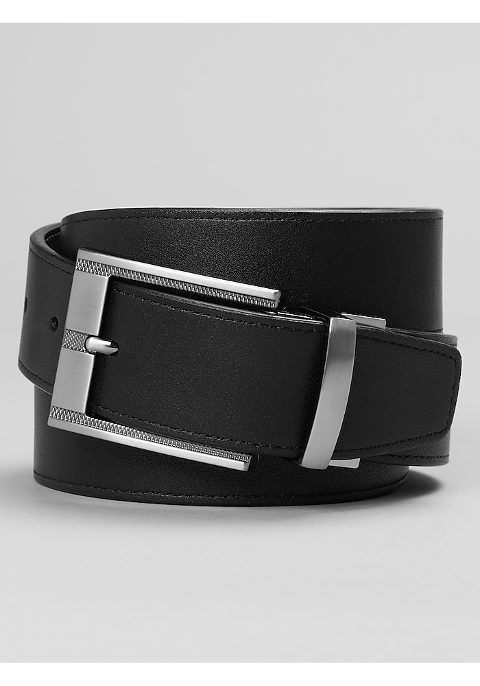 Product description Enjoy the versatility and convenience of this handsome reversible belt. Made of smooth, genuine leather, its cut edges are detailed by topstitching, and it’s secured with a brushed gunmetal-tone buckle. Great for travel, this one belt will double your dress and smart-casual style options. Enjoy the versatility and convenience of this handsome reversible belt. Made of smooth, genuine leather, its cut edges are detailed by topstitching, and it’s secured with a brushed gunmetal-tone buckle. Great for travel, this one belt will double your dress and smart-casual style options. 35mm width Reversible Brushed gunmetal-tone buckle Genuine leather Imported