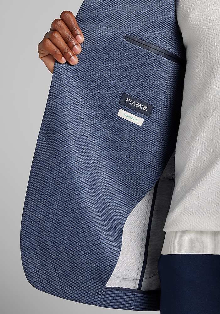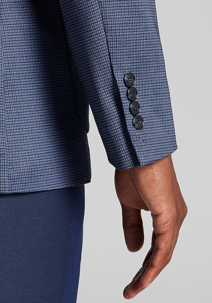Product description Redefine your dress-casual style with this knit sportcoat. From Jos. A. Bank, it’s specially woven with a more relaxed structure and made of comfort stretch fabric that lets you move through your day with ease. It’s unlined for added mobility and breathability, while the Tailored Fit renders a flattering silhouette. JAB TAILORED 2BSV CHECK KNIT JACKET Tailored Fit Two button, notch lapel, patch pockets, unlined Comfort stretch 90% polyester, 6% viscose, 4% spandex Dry clean only Imported