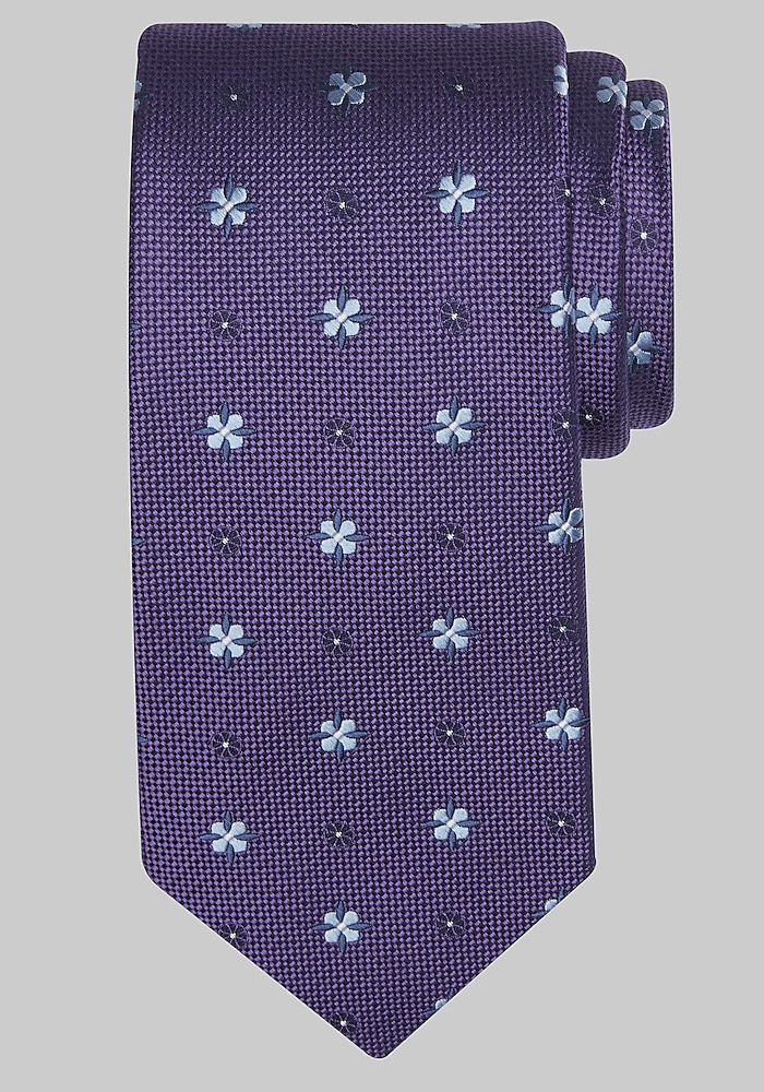 Product description Crafted from pure silk, this tie features a geometric boxed floral pattern that adds a modern twist to a classic design. Perfect for elevating your dress wear attire, this accessory combines style and sophistication. Crafted from pure silk, this tie features a geometric boxed floral pattern that adds a modern twist to a classic design. Perfect for elevating your dress wear attire, this accessory combines style and sophistication. 3 1/8-inch wide 100% silk Dry clean only Imported 11/3-11/16