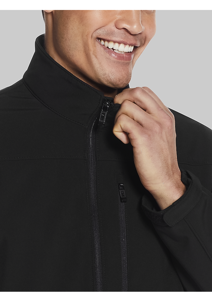 Product description Defy the wind and rain with this soft shell jacket that keeps you comfortable and warm when the weather is harsh. A touch of stretch lets you move in comfort with a great fit. Defy the wind and rain with this soft shell jacket that keeps you comfortable and warm when the weather is harsh. A touch of stretch lets you move in comfort with a great fit. Tailored fit Weather-resistant 95% polyester, 5% elastane Dry clean only Imported