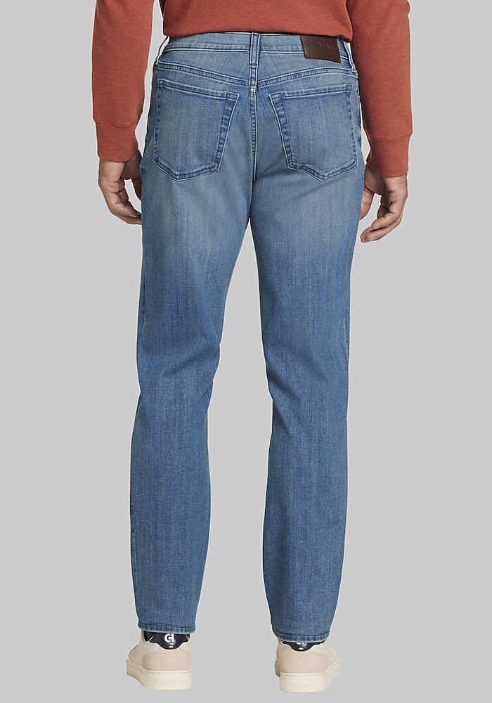 Product description These jeans by Jos. A. Bank aren’t just about comfort and style, they’re about a cleaner conscience. Woven with just the right amount of stretch, they offer total flexibility and freedom of movement, perfect for your on-the-go lifestyle. The best part? They’re crafted with a revolutionary process that uses substantially less water, chemicals, and energy compared to traditional denim production. Thanks to CleanKore dyeing, these eco-friendly jeans prove that looking good doesn’t have to cost the planet. The athletic fit offers a comfortable, roomier feel through the hips and thighs, while maintaining a clean silhouette. These jeans aren’t just about comfort and style, they’re about a cleaner conscience. Woven with just the right amount of stretch, they offer total flexibility and freedom of movement, perfect for your on-the-go lifestyle. The best part? they’re crafted with a revolutionary process that uses substantially less water, chemicals, and energy compared to traditional denim production. Thanks to CleanKore dyeing, these eco-friendly jeans prove that looking good doesn’t have to cost the planet. The athletic fit offers a comfortable, roomier feel through the hips and thighs, while maintaining a clean silhouette. Athletic Fit 91% cotton, 7% elasterell, 2% spandex Machine washable Imported