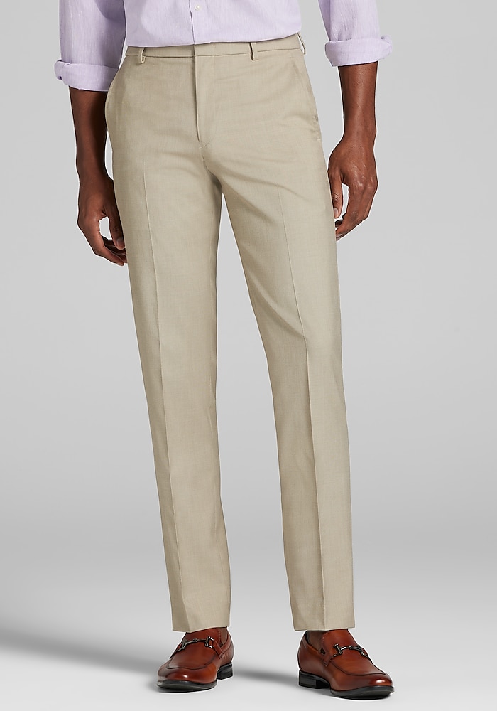 Product description Ideal for both the office and smart-casual occasions, these Jos. A. Bank flat-front dress pants feature a flattering Slim Fit. Pair them with a crisp dress shirt and a blazer for a polished look, or elevate your casual look with a button-down shirt and loafers. Flat front Flat front 68% polyester, 29% viscose, 3% elastane Machine washable Imported