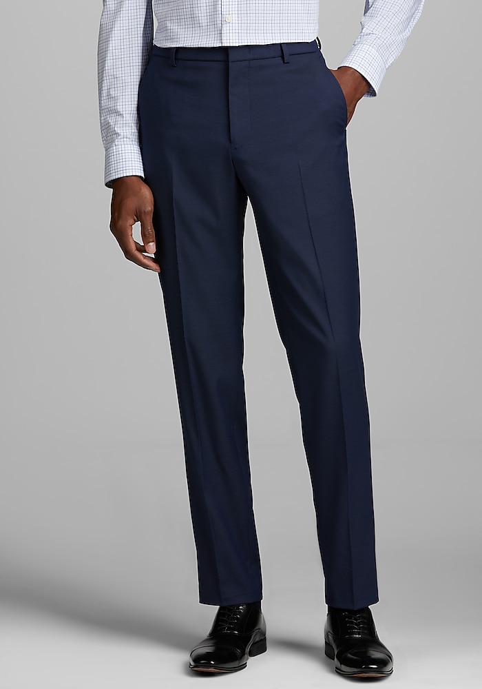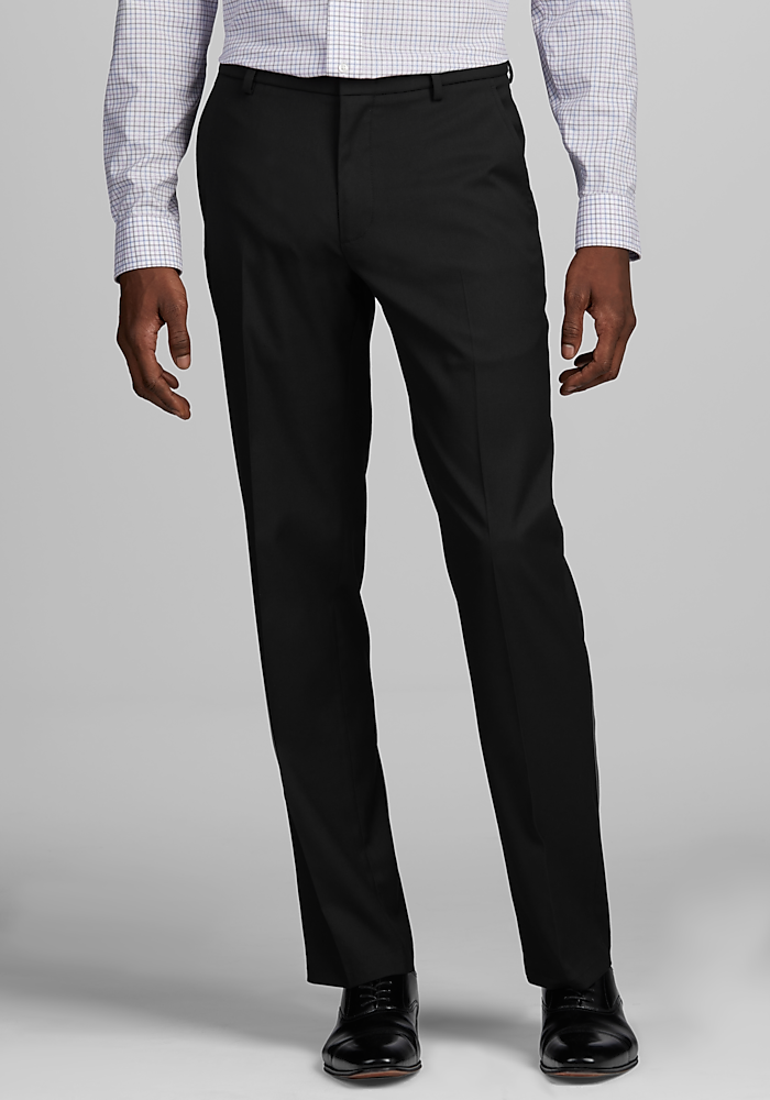 Product description Perfect for the man on the move, these dress pants by Jos. A. Bank feature a hint of stretch and a comfort waistband. Perfect for the man on the move, these dress pants feature a hint of stretch and a comfort waistband. Tailored fit 68% polyester, 29% viscose, 3% elastane Flat Front Dry Clean Only Imported