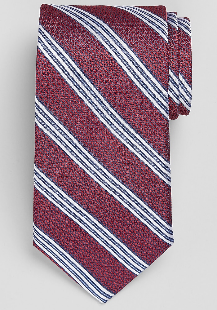 Product description Expertly crafted from 100% silk, this fine tie features a textured stripe pattern that adds depth and dimension in equal measure. Its luxurious feel and refined finish make it a standout choice for business attire, weddings, or any occasion that calls for polished style. 3 1/8-inch width 100% silk Dry clean only Imported