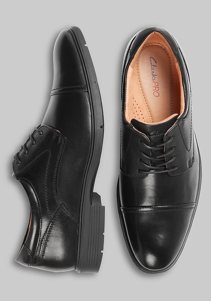 Product description These Oxfords from Clarks are a stylish and sophisticated shoe that effortlessly combines classic design with modern comfort. Made from premium leather, the feature a refined cap toe detail, adding an extra layer of elegance to your wardrobe. Equipped with Cushion Soft technology and an ortholite footbed, they provide all-day comfort and support, making these shoes ideal for long hours at the office or special occasions. Additionally, the durable rubber outsole ensures superior traction. Lace up Pro contour EVA footbed Premium leather upper Certified slip-resistant outsole Imported