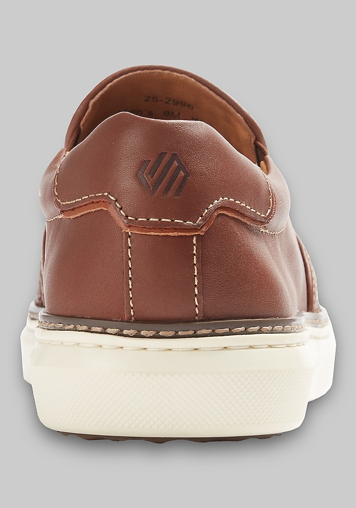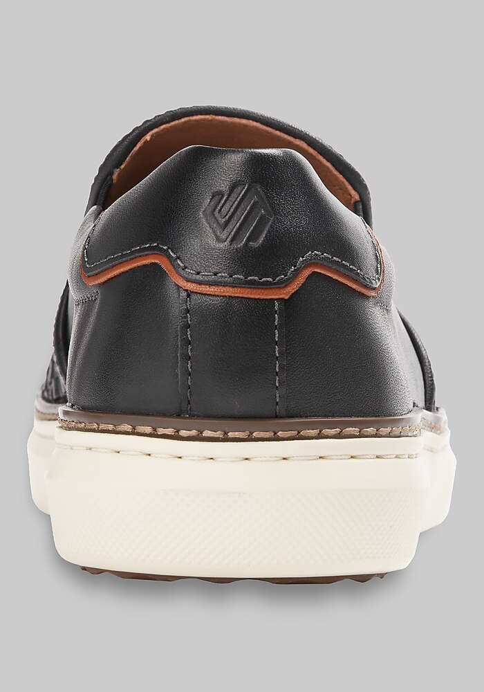Product description Easygoing style meets refined craftsmanship in this woven slip-on. The textured design adds subtle interest, while the streamlined silhouette keeps it versatile enough to pair with everything from casual chinos to laid-back shorts. With its slip-on convenience and lightweight comfort, it’s the perfect shoe for effortless, everyday wear. Whether you’re heading out for the weekend or just keeping it casual, this shoe delivers relaxed sophistication. XC Foam midsole Padded heel and collar Double-stretch gores for slip-on ease Leather Imported Slip-on shoes