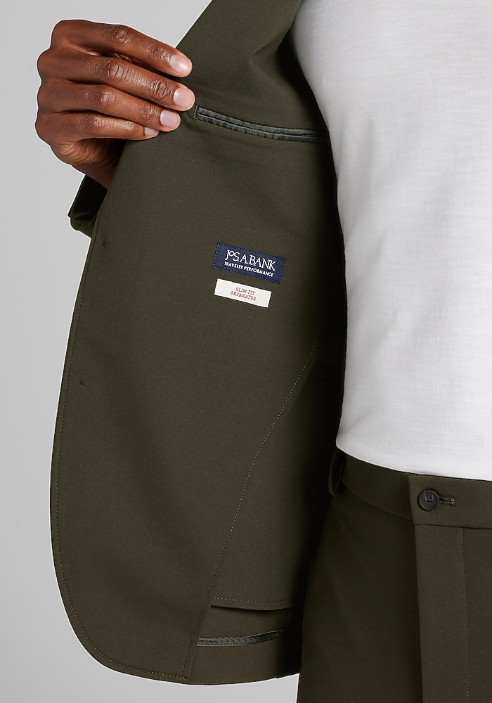 Product description This suit separates jacket from the Traveler® Collection offers tailored style with built-in flexibility. Crafted with stretch for ease of movement, it features an unlined construction and refined exterior pick stitching for a clean, modern look. As part of a mix-and-match system, it pairs seamlessly with coordinating pants, allowing you to create your ideal fit without the need for alterations. Sharp detailing makes it a versatile go-to for travel, work, or special events. Notch lapel, two button Unlined Single vent Exterior pick stitching 48% nylon, 42% viscose, 10% spandex Dry clean only Imported