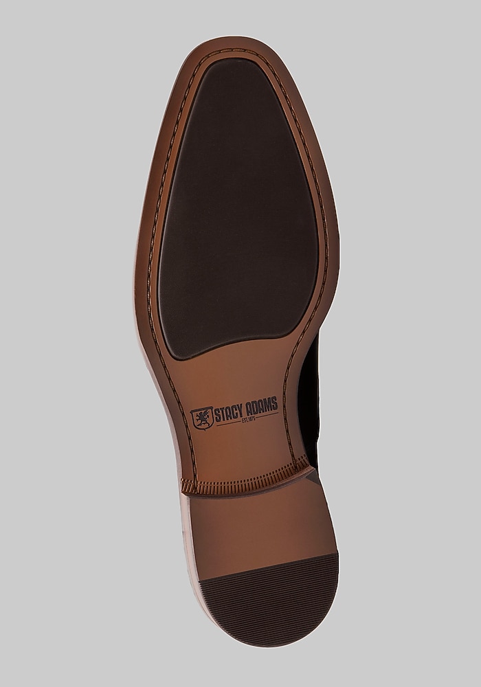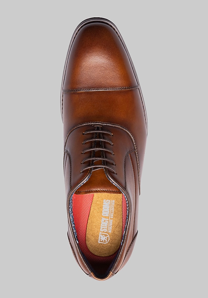 Product description Exude understated confidence in these posh Oxfords from Stacy Adams. A smooth exterior made of soft, burnished leather is styled with sleek lines and a classic cap toe. The RedZone removable footbed with molded heel cup provides anatomical arch support for a more comfortable stride. Breathable textile linings. Stacked heel. Durable rubber outsole. Imported. Soft leather upper Textile linings for added breathability The red zone removable footbed with molded heel cup Provides anatomical arch support For a more comfortable stride Durable rubber outsole