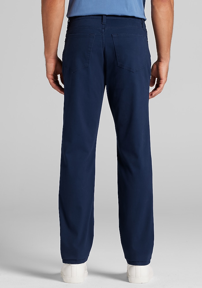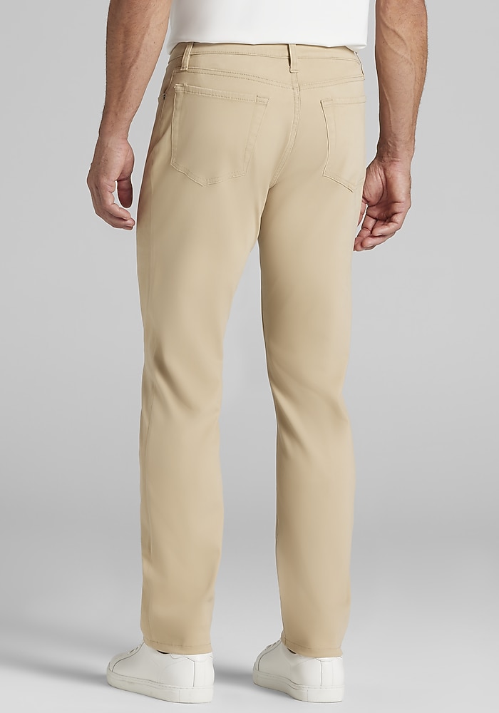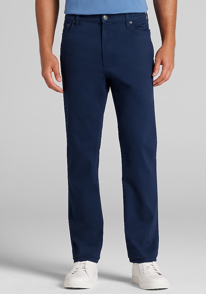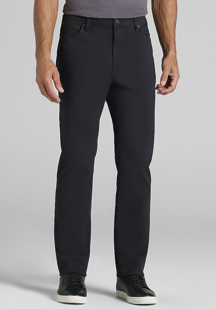 Product description These pants deliver a modern look with the ease you need for everyday wear. In a Tailored Fit, they offer a clean, polished silhouette, while the comfort stretch fabric moves with you for all-day flexibility. The classic 5-pocket styling adds a casual edge, making these pants versatile enough to dress up with a button-down or keep it relaxed with a polo or tee. These pants deliver a modern look with the ease you need for everyday wear. In a Tailored Fit, they offer a clean, polished silhouette, while the comfort stretch fabric moves with you for all-day flexibility. The classic 5-pocket styling adds a casual edge, making these pants versatile enough to dress up with a button-down or keep it relaxed with a polo or tee. Tailored Fit Flat front 56% cotton, 41% rayon, 3% elastane Machine washable Imported