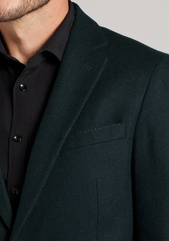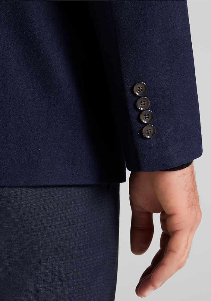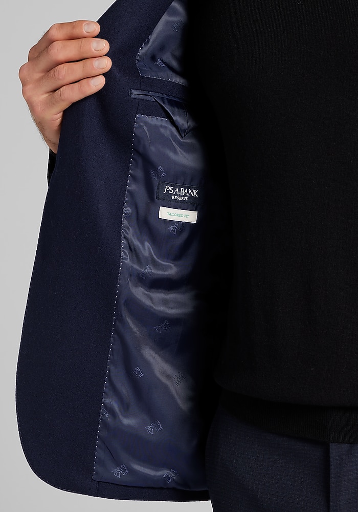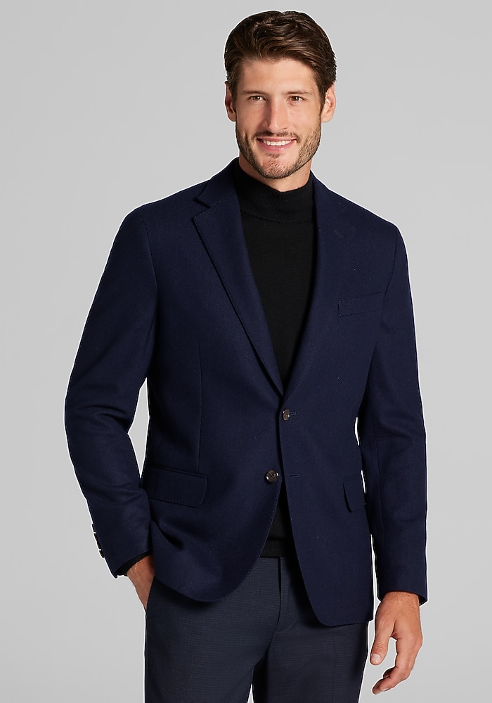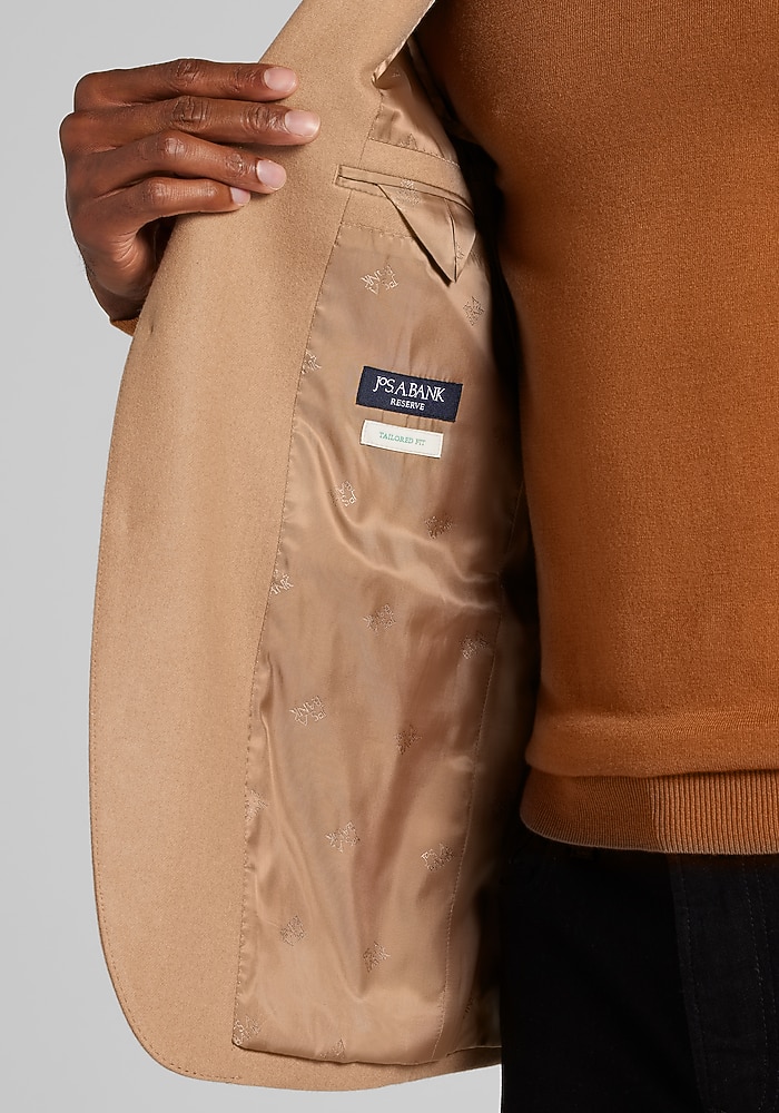 Product description Woven with the warmth of wool and the soft elegance of cashmere, this sportcoat exudes dress-casual class. From the Reserve Collection, it showcases a notch lapel, flapped pockets, and pick-stitch detailing along the interior and exterior. Designed with a Tailored Fit, it wears well with slacks, chinos, and denim alike. Woven with the warmth of wool and the soft elegance of cashmere, this sportcoat exudes dress-casual class. From the Reserve Collection, it showcases a notch lapel, flapped pockets, and pick-stitch detailing along the interior and exterior. Designed with a Tailored Fit, it wears well with slacks, chinos, and denim alike. Tailored Fit Two button, notch lapel, flapped pockets, 3/8 lined 90% wool, 10% cashmere Dry clean only Imported