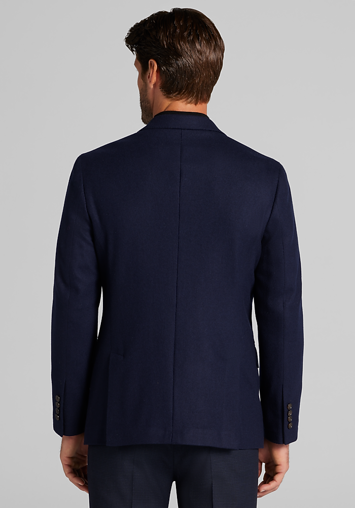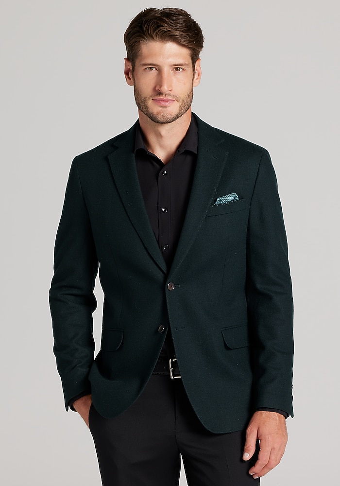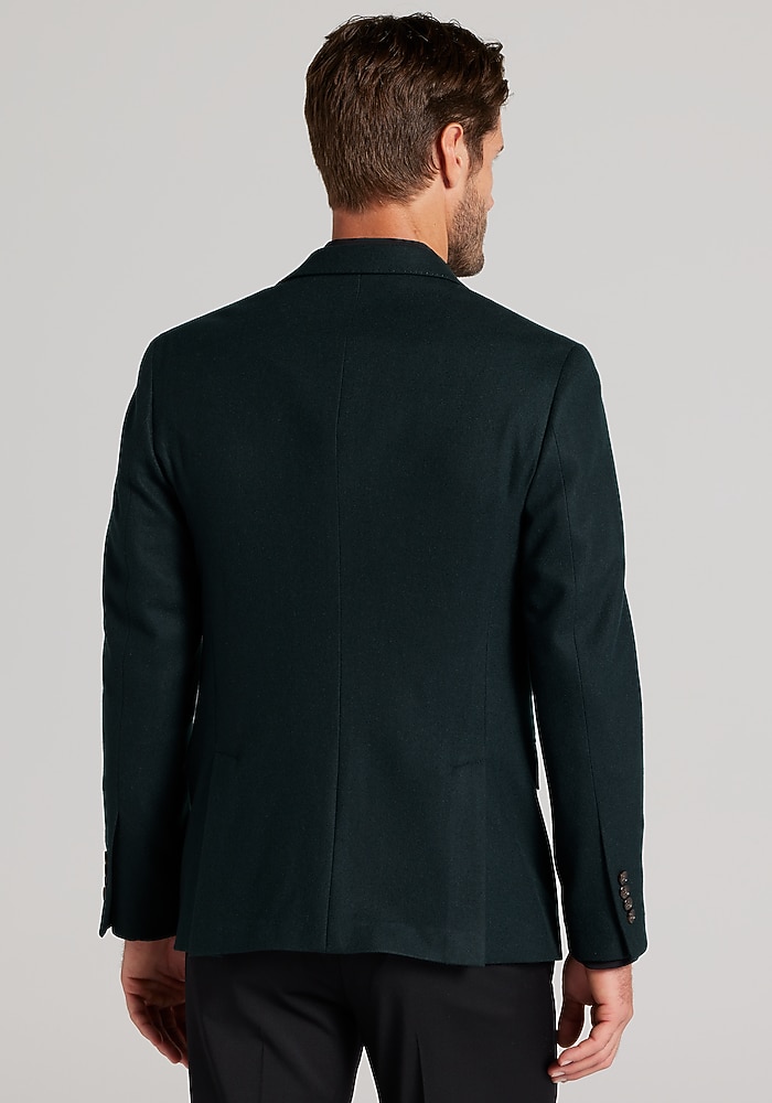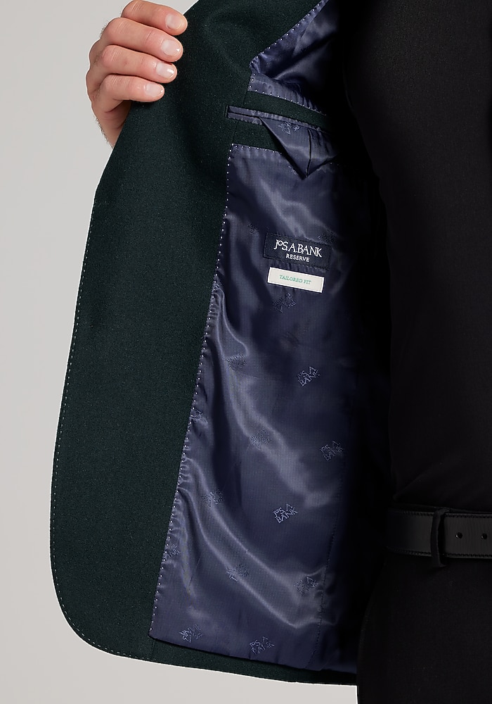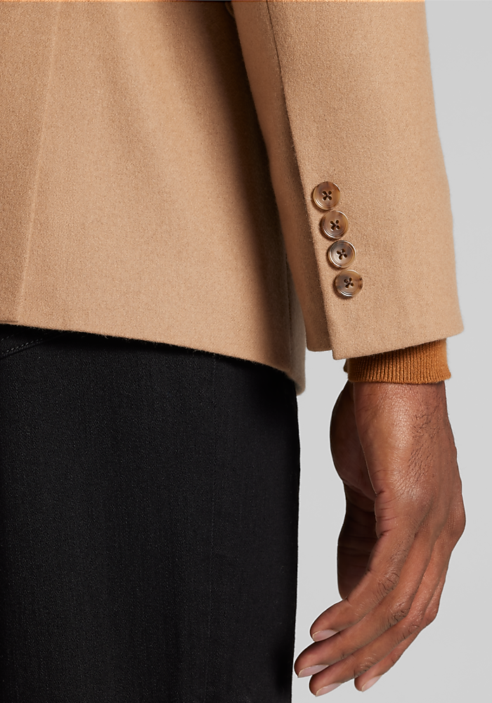Product description Woven with the warmth of wool and the soft elegance of cashmere, this sportcoat exudes dress-casual class. From the Reserve Collection, it showcases a notch lapel, flapped pockets, and pick-stitch detailing along the interior and exterior. Designed with a Tailored Fit, it wears well with slacks, chinos, and denim alike. Woven with the warmth of wool and the soft elegance of cashmere, this sportcoat exudes dress-casual class. From the Reserve Collection, it showcases a notch lapel, flapped pockets, and pick-stitch detailing along the interior and exterior. Designed with a Tailored Fit, it wears well with slacks, chinos, and denim alike. Tailored Fit Two button, notch lapel, flapped pockets, 3/8 lined 90% wool, 10% cashmere Dry clean only Imported