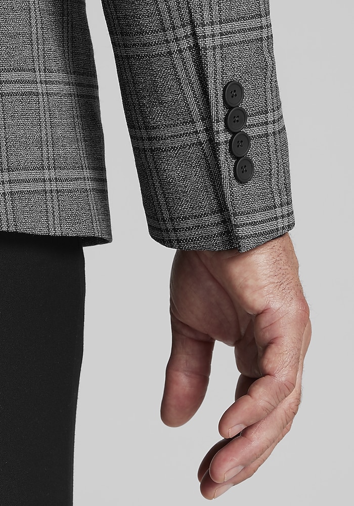Product description This sustainable sportcoat is designed for the jet-setting professional who needs to keep their cool. Made with recycled poly fibers powered by 37.5© technology, it actively regulates your body temperature, removing moisture when you’re hot and retaining warmth when you’re cold. Cut with a Slim Fit, it’s comprised of a high-performance fabric that wicks away moisture and stretches for both comfort and effortless movement. Antimicrobial properties work to eliminate odor, and keep you feeling fresh the whole day through. BT TRAV COOL MOTION SLIM 2BTN GREY WINDOWPANE SPORTCOAT Slim Fit Two button, notch lapel, flapped pockets, fully lined Antimicrobial 67% wool, 30% recycled 37.5 polyester, 3% spandex Dry clean only Imported