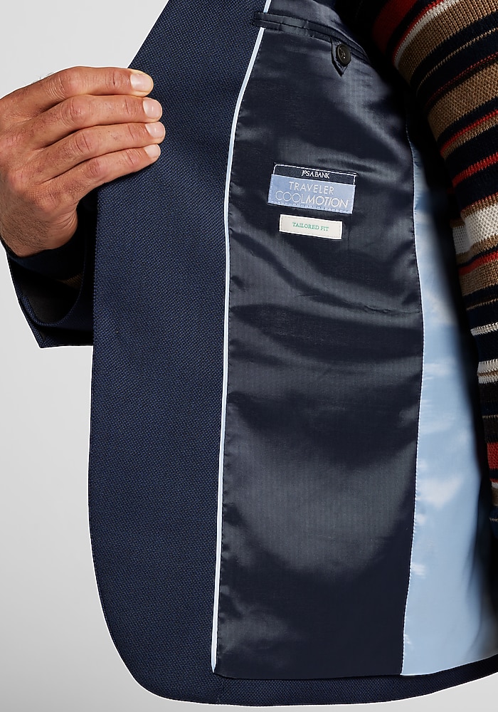 Product description This Traveler® Collection sportcoat combines elevated style with innovative function. Made from a refined blend of wool and 37.5 polyester, it offers breathable comfort that adapts to your body s temperature and wicks away moisture. It’s tailored for a sharp silhouette that moves with you, making it perfect for travel, meetings, or wherever the day takes you. This Traveler® Collection blazer combines elevated style with innovative function. Made from a refined blend of wool and 37.5 polyester, it offers breathable comfort that adapts to your body s temperature and wicks away moisture. It’s tailored for a sharp silhouette that moves with you, making it perfect for travel, meetings, or wherever the day takes you. Tailored Fit Notch lapel, two button Flap pockets, side vents Antimicrobial properties reduce moisture and odor 66% wool, 30% recycled 37.5 polyester, 4% spandex Dry clean only Imported