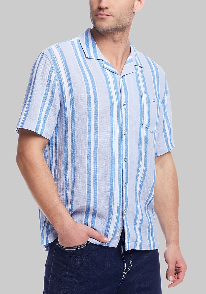 Product description Effortlessly laid-back and timeless, this woven shirt from Weatherproof Vintage brings texture and comfort together in a classic silhouette. The soft, breathable fabric features a distinctive waffle weave that adds depth, while short sleeves and a full button front keep the look versatile and easygoing. With subtle vintage details and a lightweight feel, it’s a reliable go-to for everyday wear. Traditional Fit Camp collar Button front, chest pocket Breathable fabric 60% cotton, 40% polyester Machine washable Imported